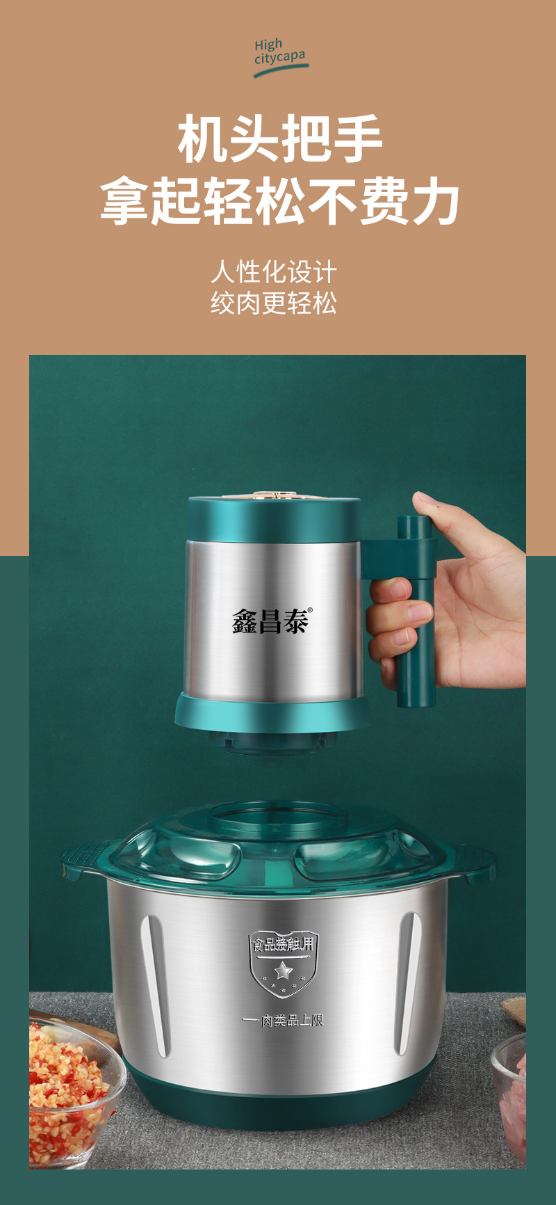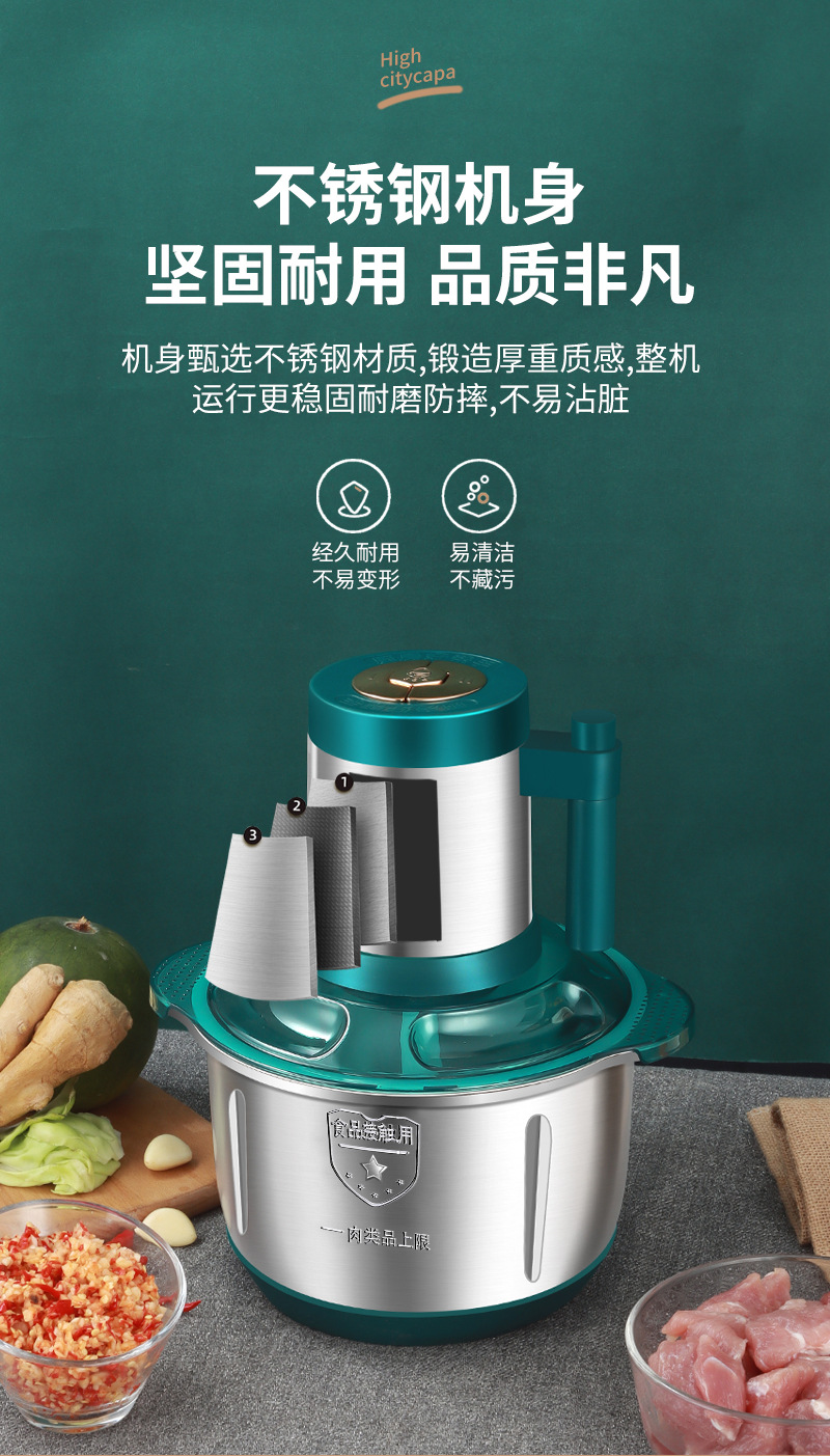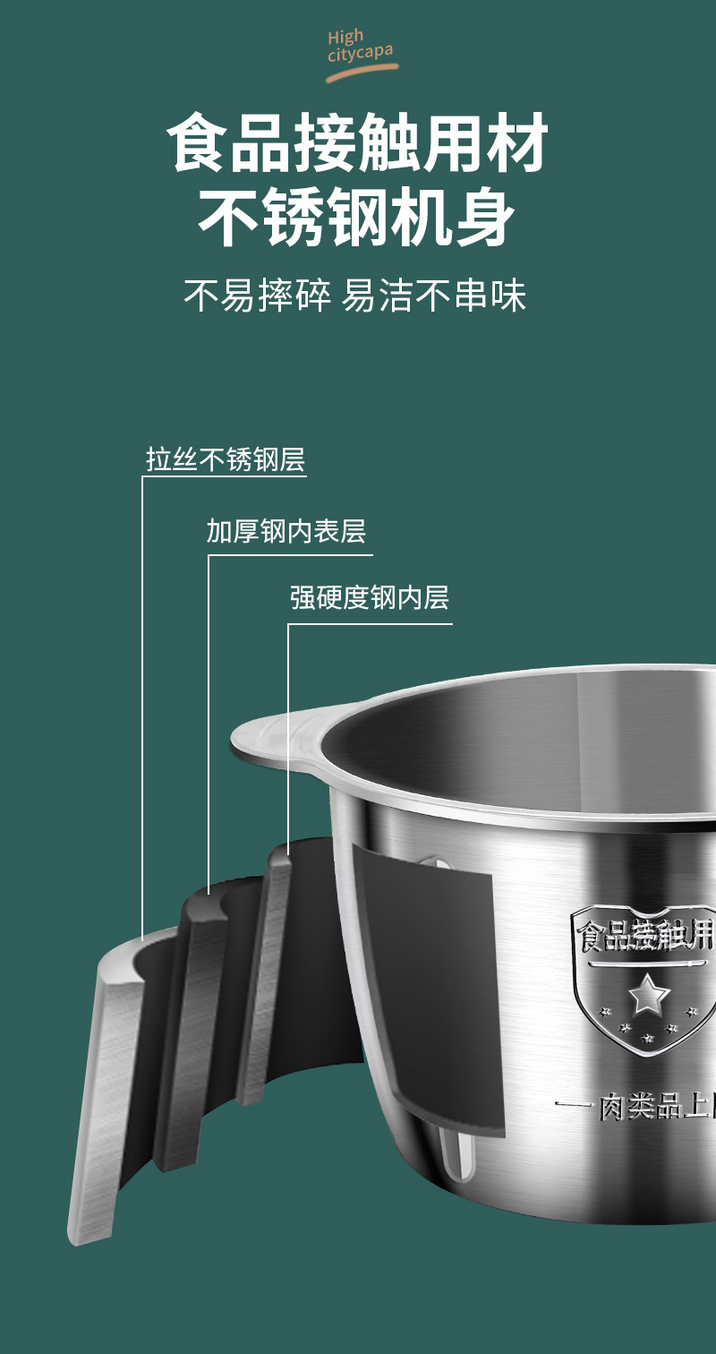 Xinchangtai 5L 스틸 컵 스터핑 머신 및 국수 다기능 다진 고기 마늘 후추 믹서 가정용 고기 분쇄기스토어 가기