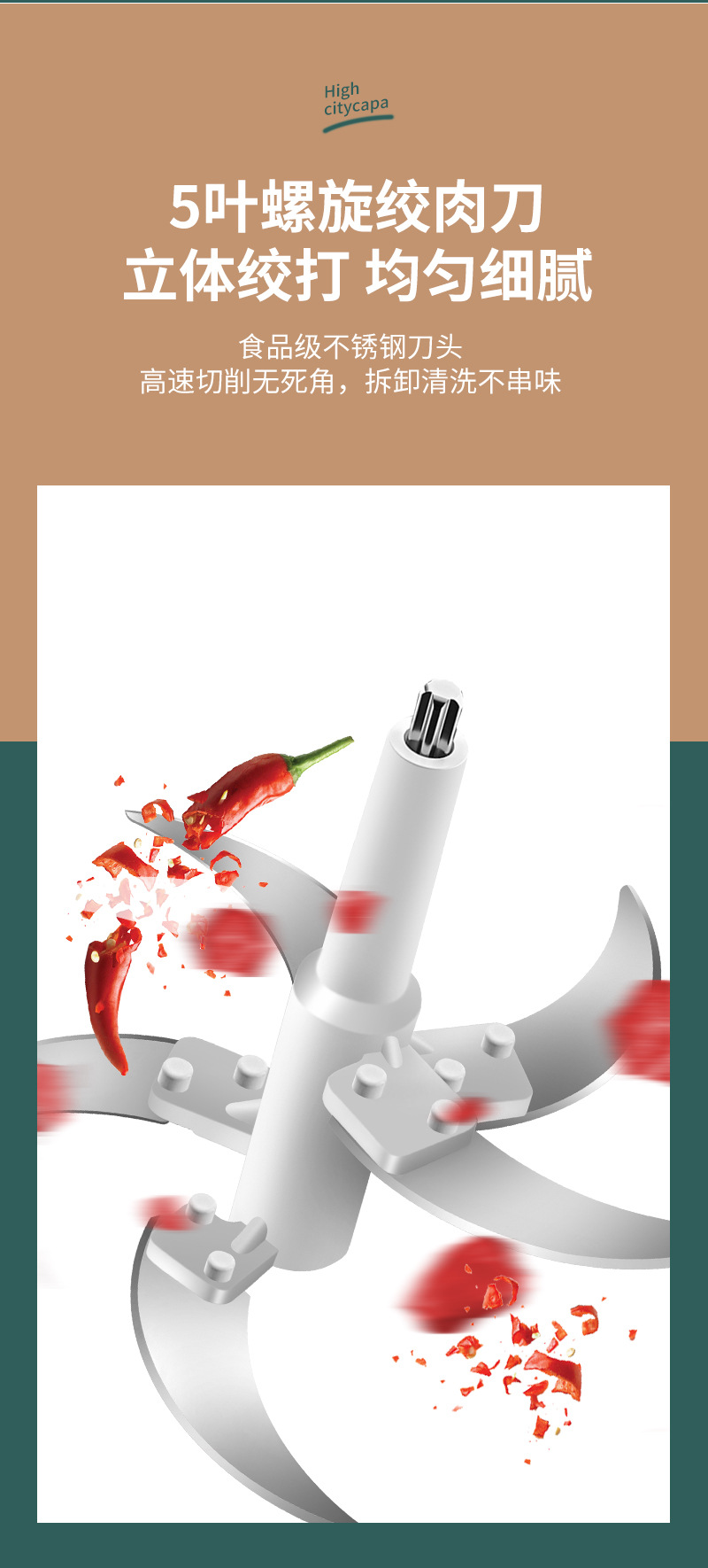 Xinchangtai 5L 스틸 컵 스터핑 머신 및 국수 다기능 다진 고기 마늘 후추 믹서 가정용 고기 분쇄기