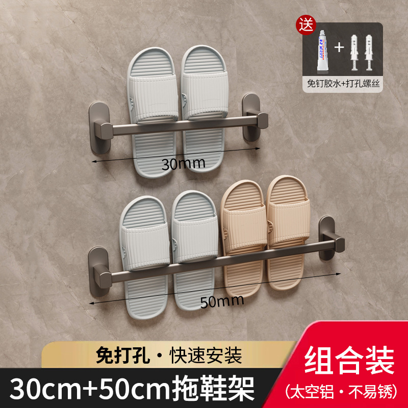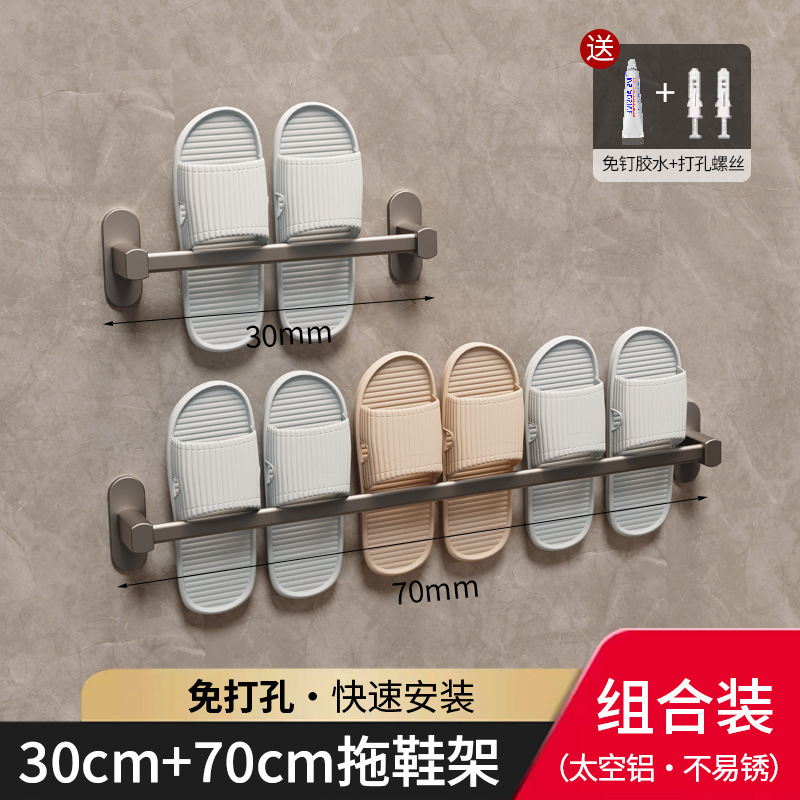 공간 알루미늄 욕실 슬리퍼 랙 펀치 프리 욕실 문걸이 슬리퍼 랙 유물 배수 보관 랙 벽걸이스토어 가기