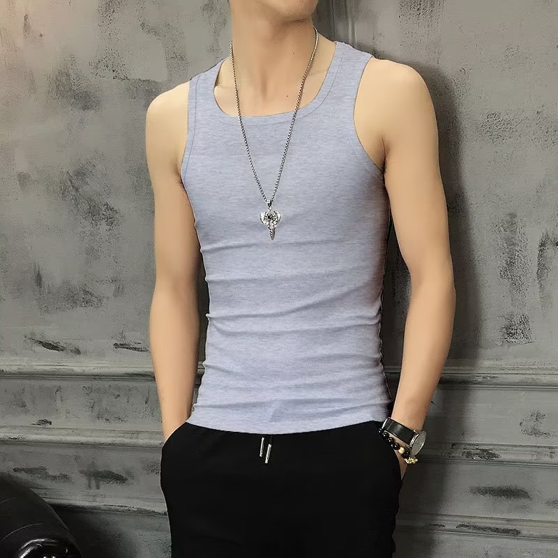 한국 스타일 여름 조끼 남성용 단색 민소매 티셔츠 남성용 농구 스포츠 피트니스 허들 꽉 트렌디 한 티셔츠스토어 가기