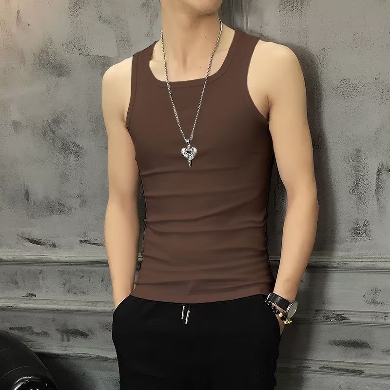 한국 스타일 여름 조끼 남성용 단색 민소매 티셔츠 남성용 농구 스포츠 피트니스 허들 꽉 트렌디 한 티셔츠
