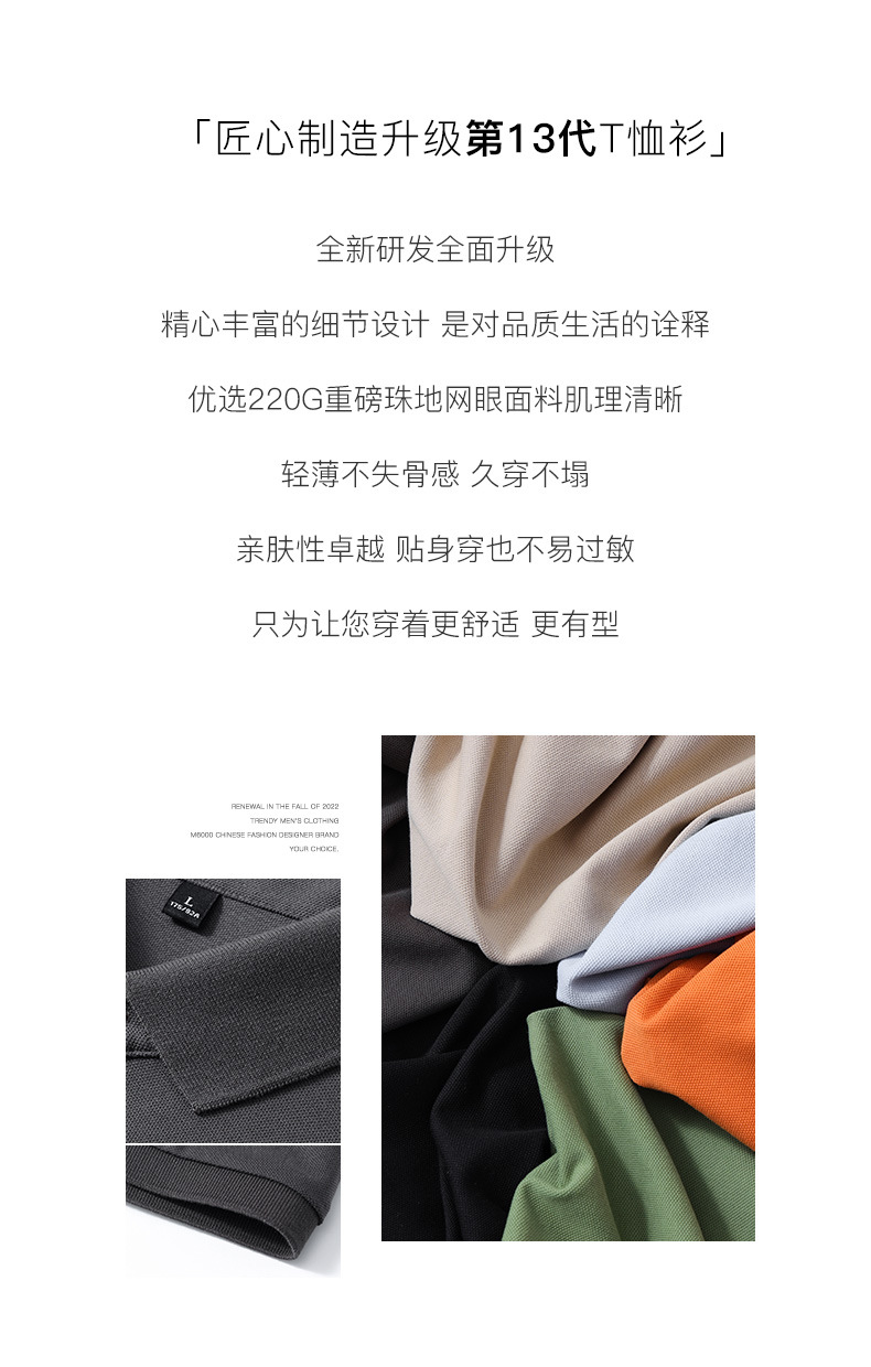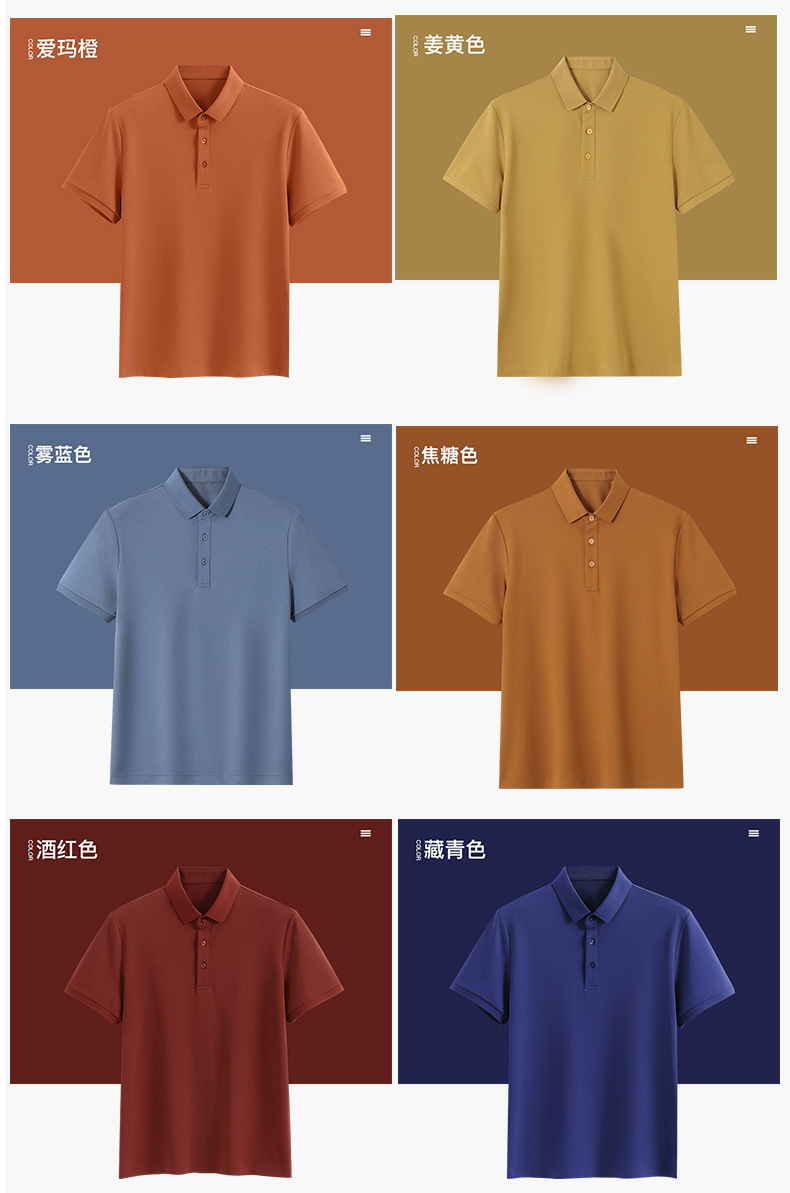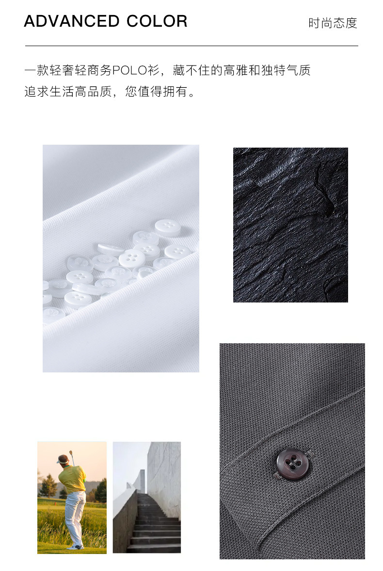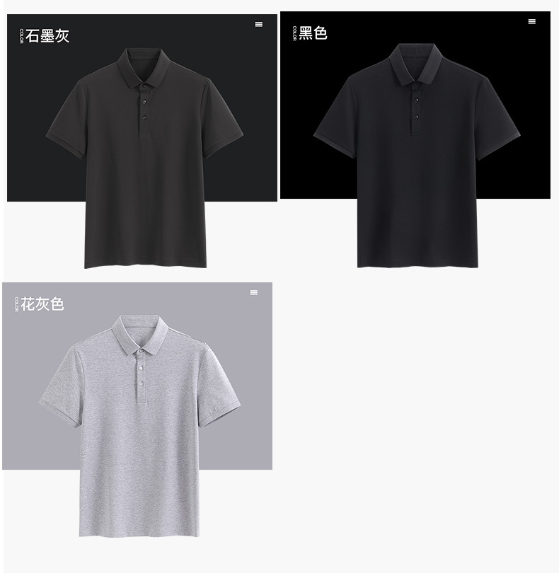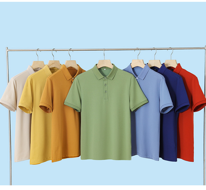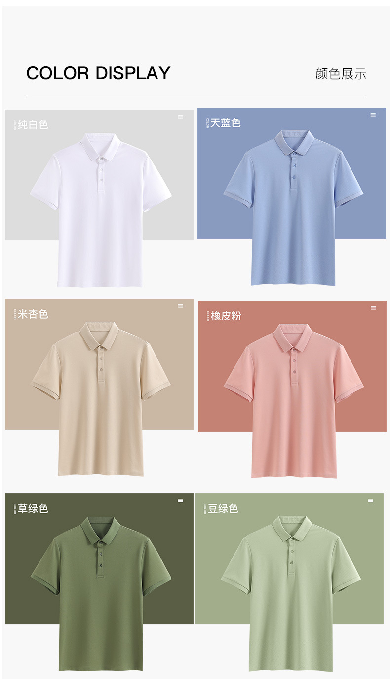 여름 신상 남성용 라펠 실크광택 피케 코튼 솔리드 컬러 POLO 셔츠 7A 항균 통기성 반팔 티셔츠 상의