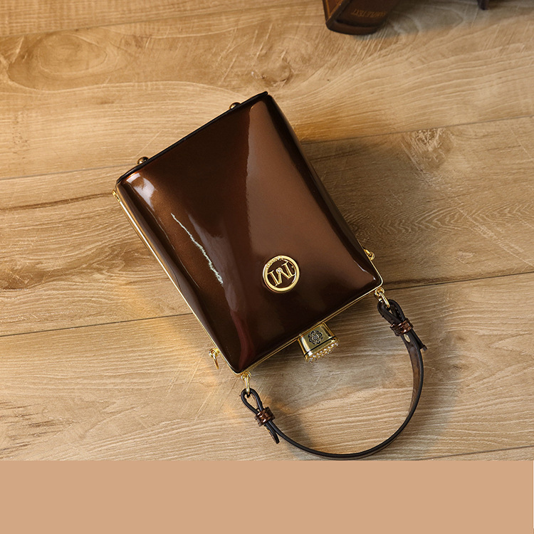 유럽과 미국 스트리트 패션 세로 소형 핸드백 휴대 전화 가방 에나멜 가죽 샤이니 숄더 크로스 바디 백 라이트 럭셔리 모든 매치