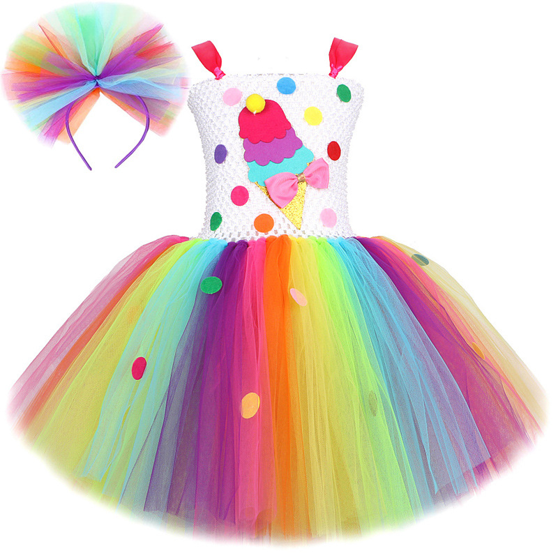 소녀의 무지개 아이스크림 공주 TUTU 스커트 어린이 휴일 파티 원피스 사탕 메쉬 퍼프 원피스