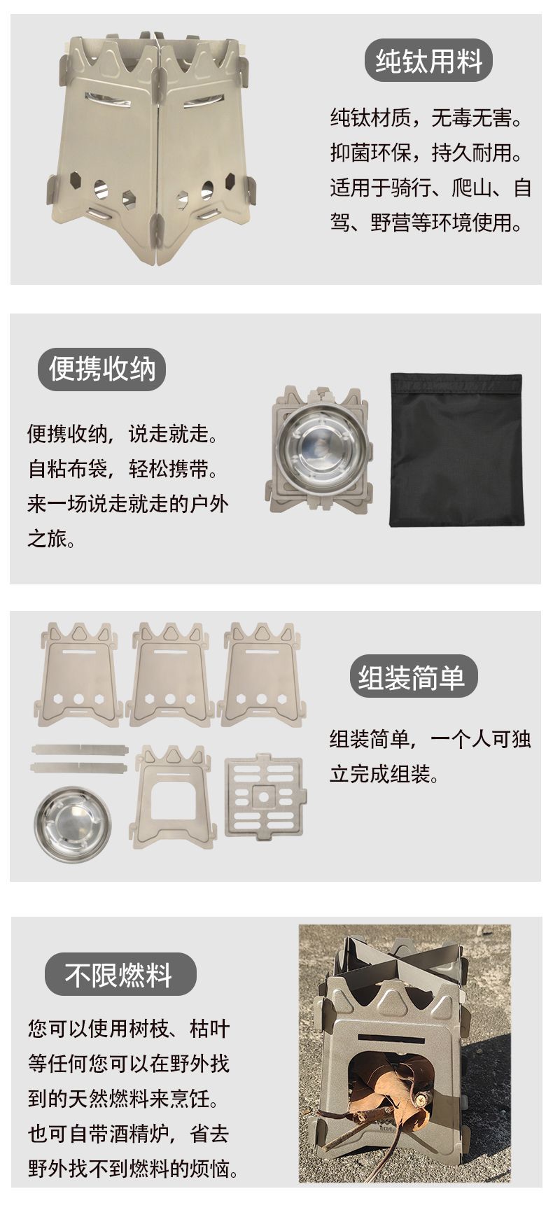 순수한 티타늄 압력 유형 큰 장작 스토브 알코올 스토브 랙 공장 도매 야외 캠핑 스토브 차 끓는 난방 스토브 TL스토어 가기