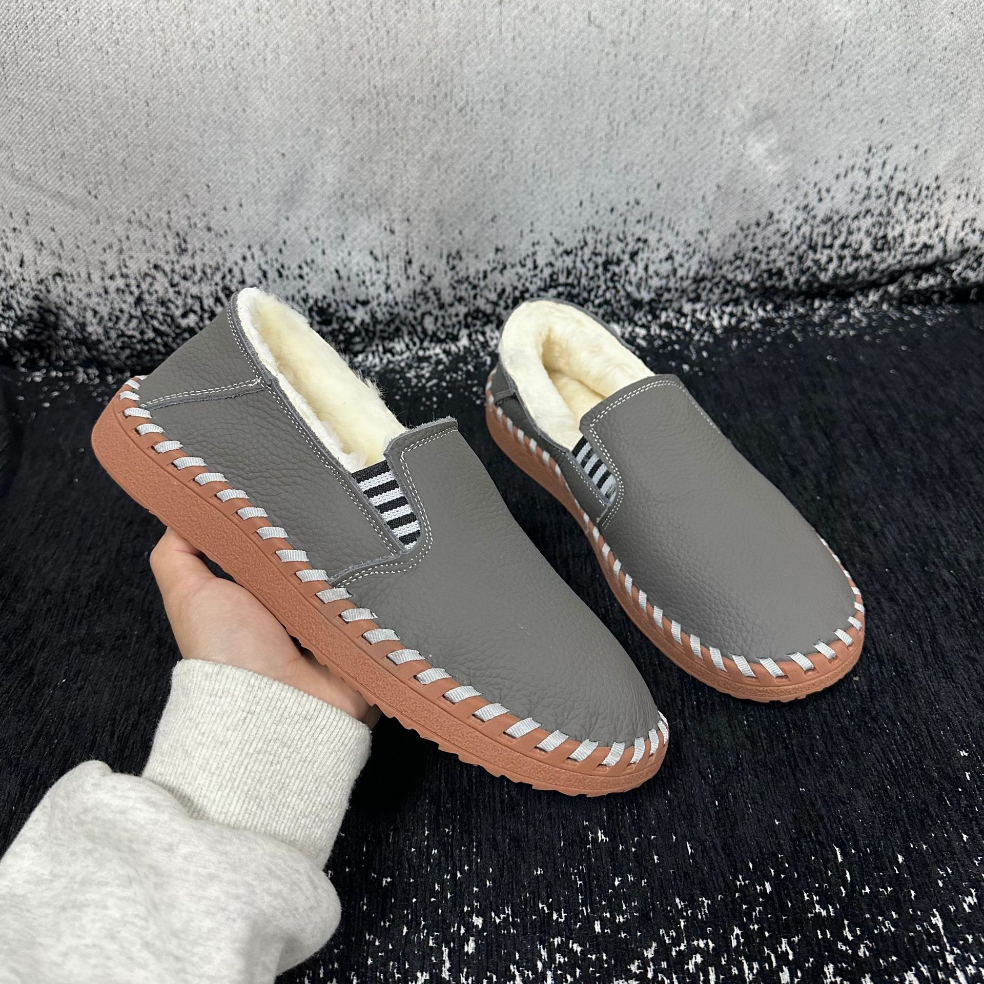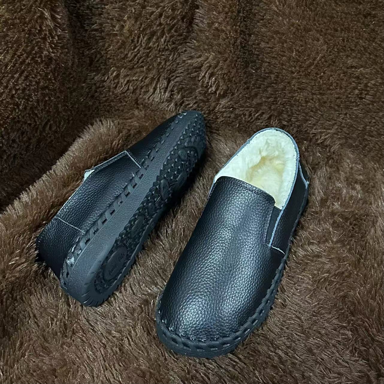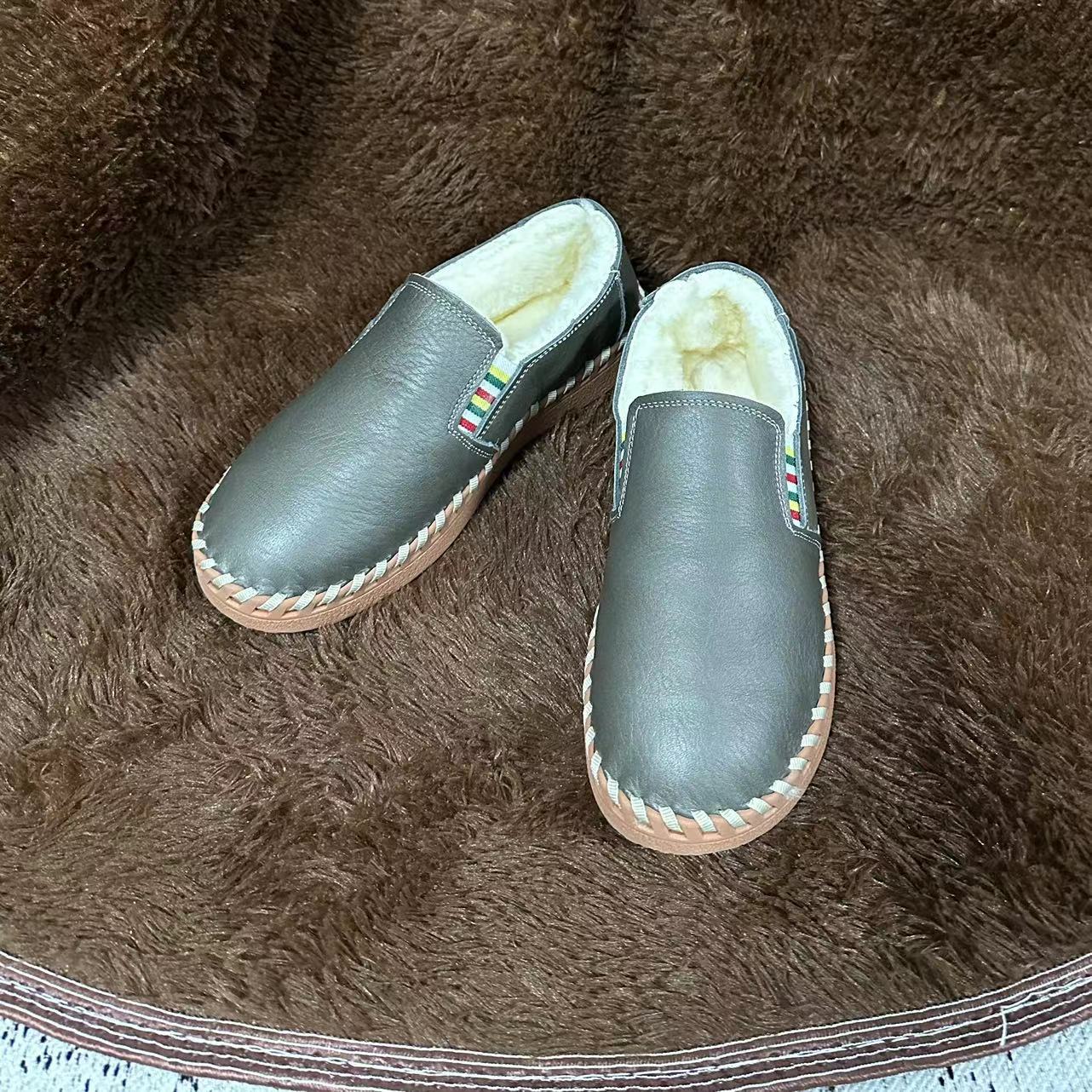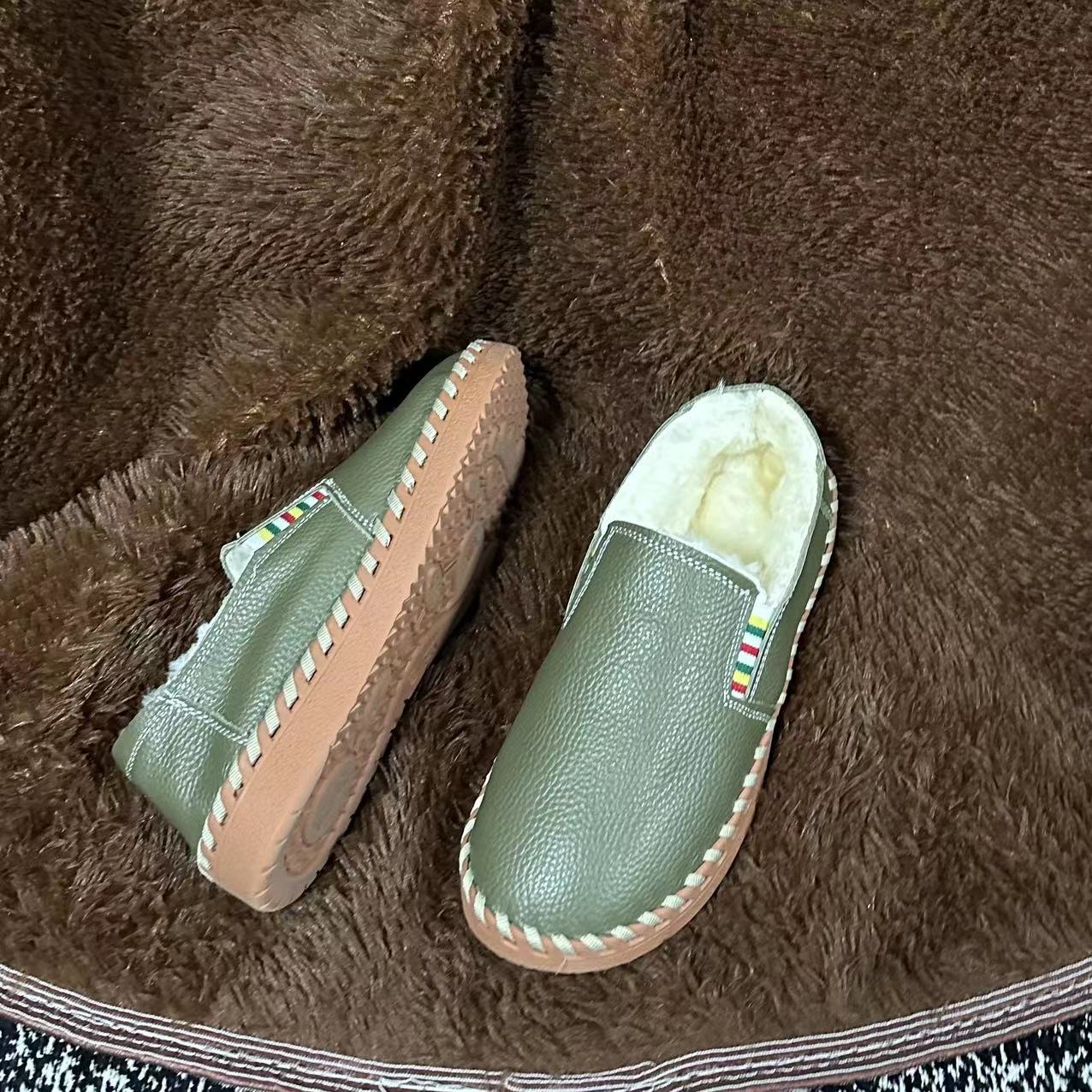 가을 겨울 천연 가죽 여성 신발, 가죽과 모피 일체형 엄마 신발, 동북 면털 보온 부드러운 밑창 캐주얼 로퍼 여성용 편안한 신발스토어 가기