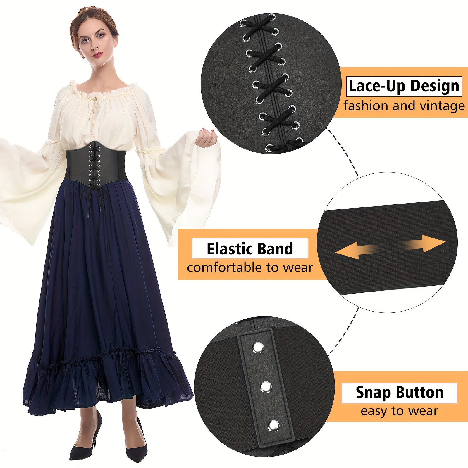 유럽과 미국 레트로 레이스 업 코르셋 와이드 벨트 클래식 단색 탄성 꽉 허리 슬리밍 탄성 허리 씰스토어 가기
