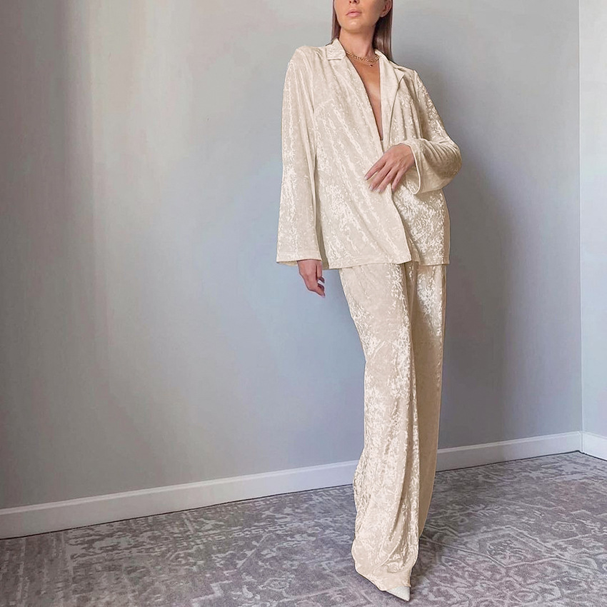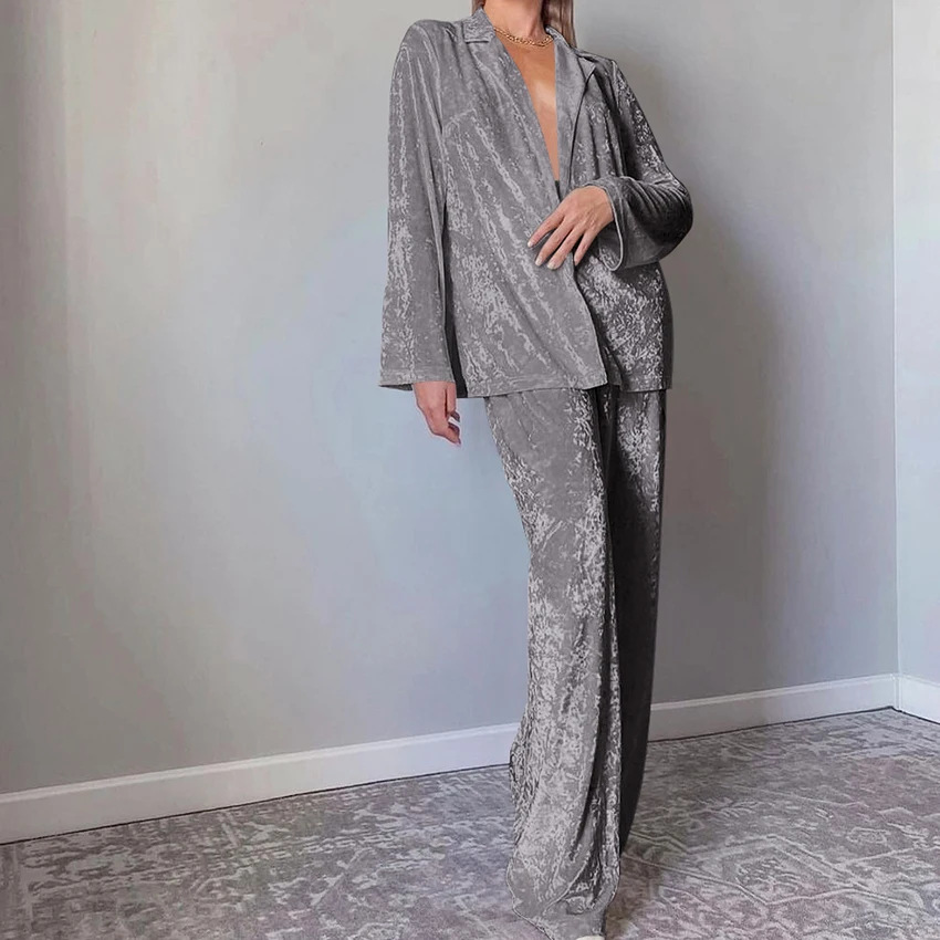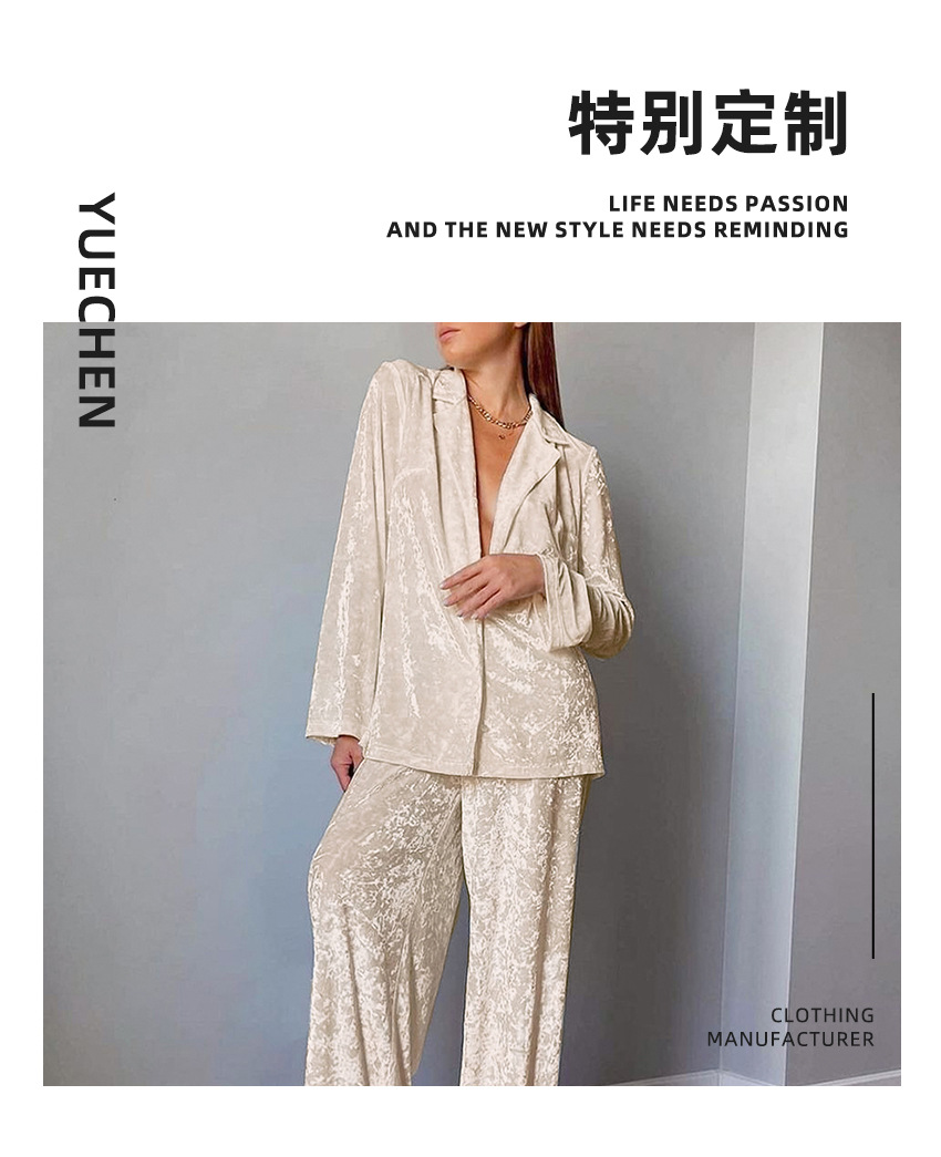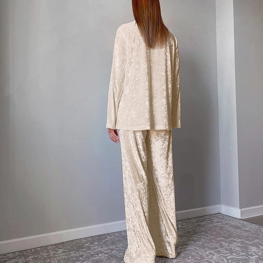 유럽과 미국 크로스 보더 가을과 겨울 새로운 패션 따뜻한 골드 다이아몬드 벨벳 편안한 긴 소매 바지 잠옷 여성용 투피스 홈 의류