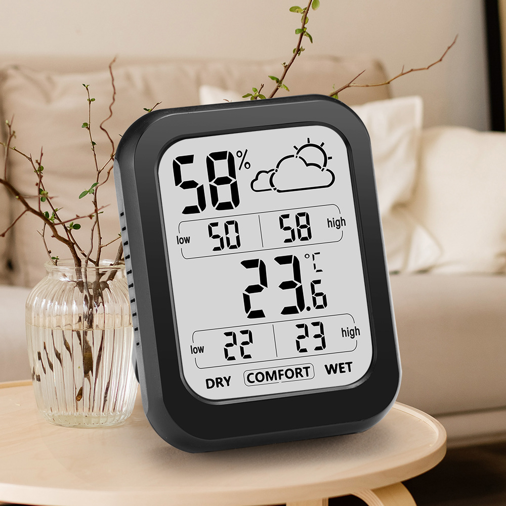2、同屏显示温度、湿度和舒适度,数字清晰,一目了然;