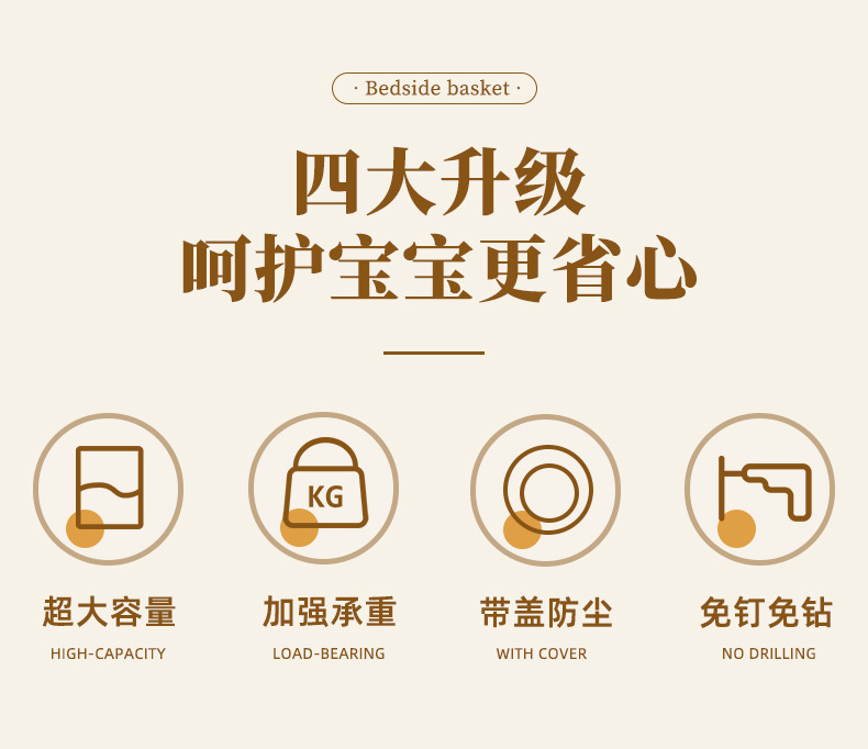 침대 옆 교수형 바구니 침대 옆 보관함 유아 침대 교수형 아기 기저귀 보관함 비 펀치 상부 침대 학생 기숙사스토어 가기