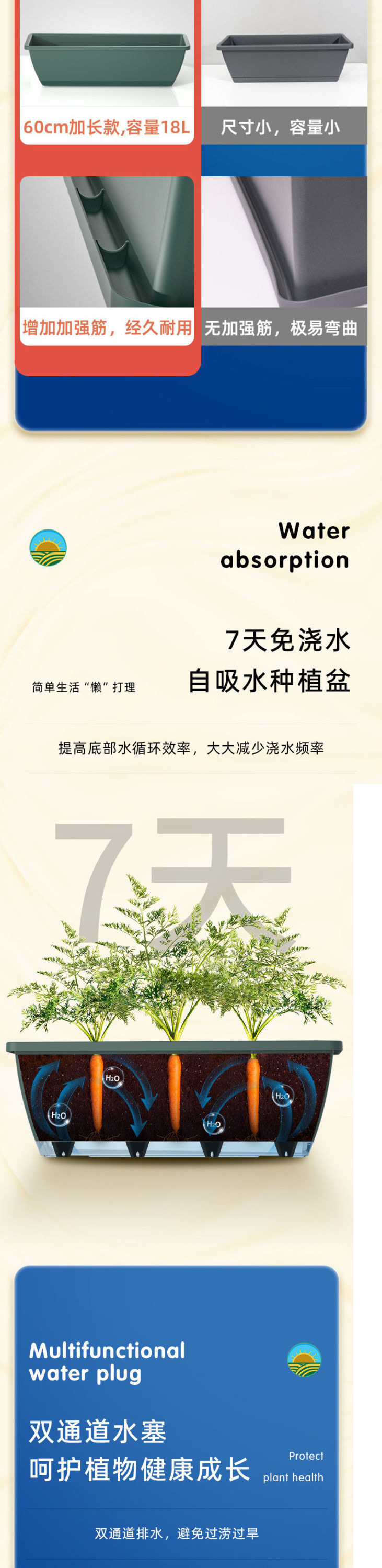 야채 재배를위한 특별 상자 직사각형 화분 딸기 심기 냄비 플라스틱 발코니 야채 냄비 가정용 긴 꽃걸이