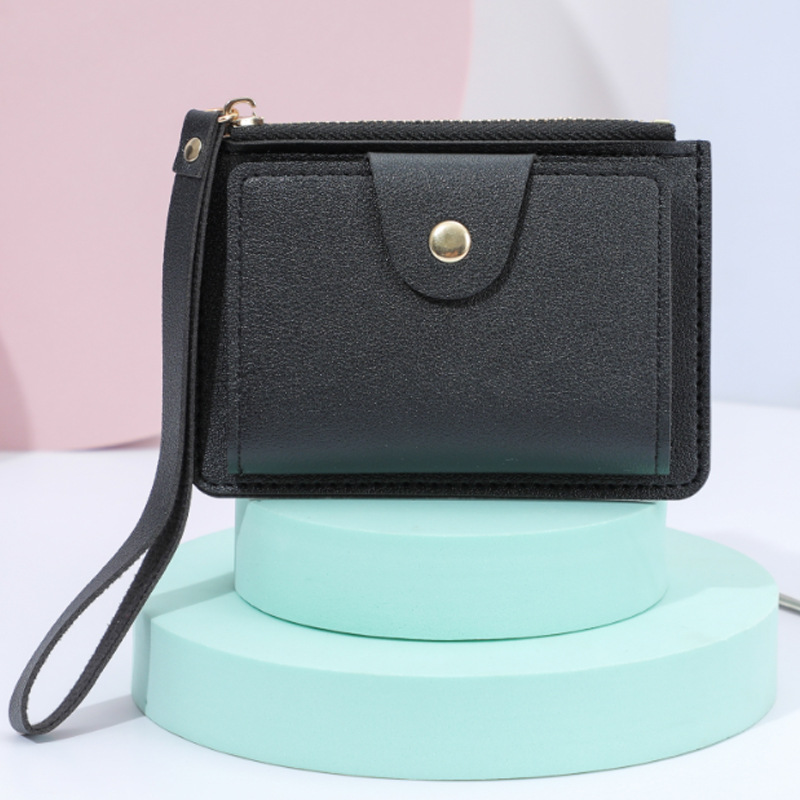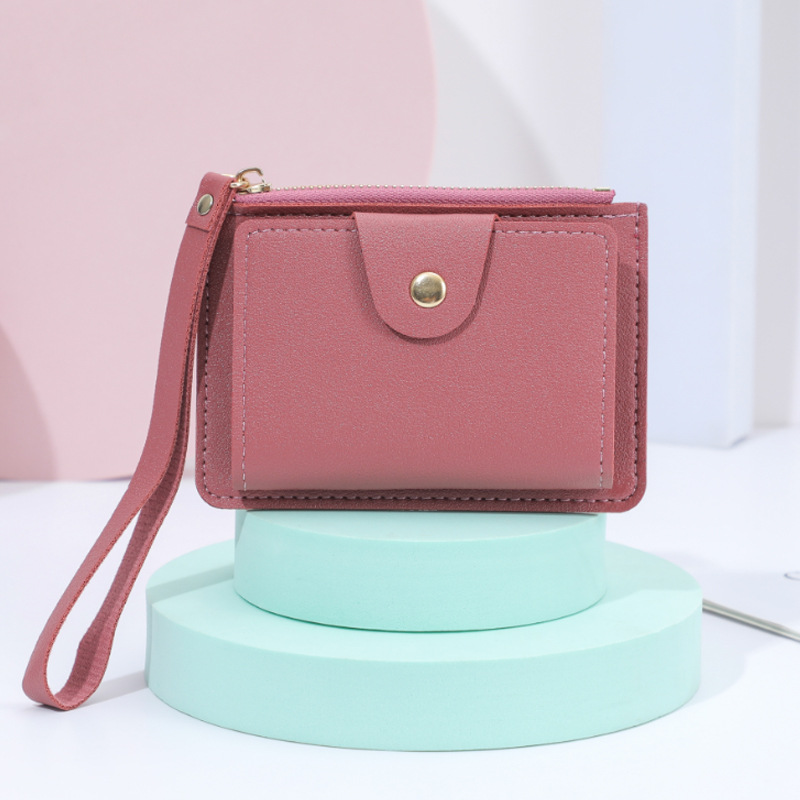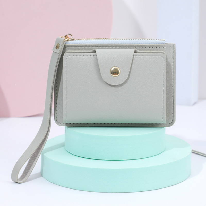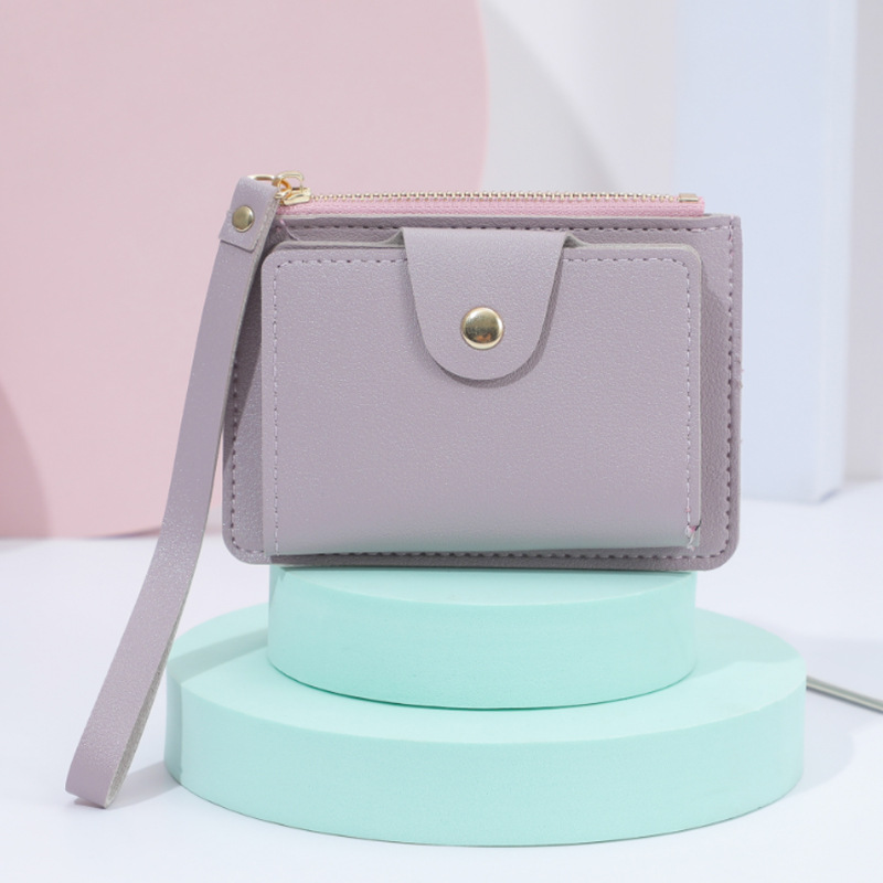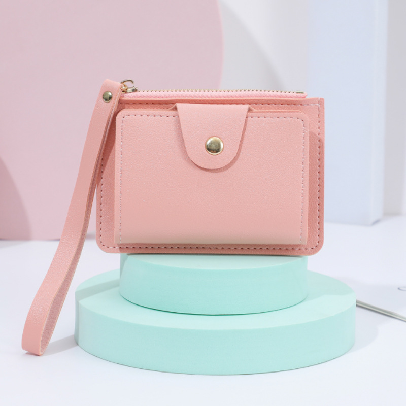 새로운 여성 지갑 짧은 지갑 여성용 얇은 카드 가방 손목 밴드 여성용 틈새 귀여운 간단한 학생 동전 지갑
