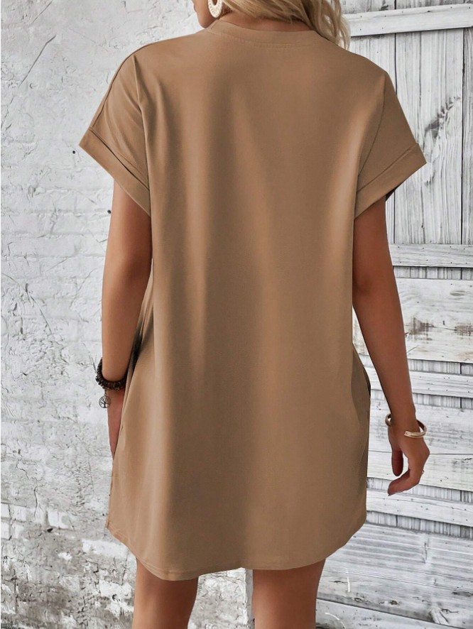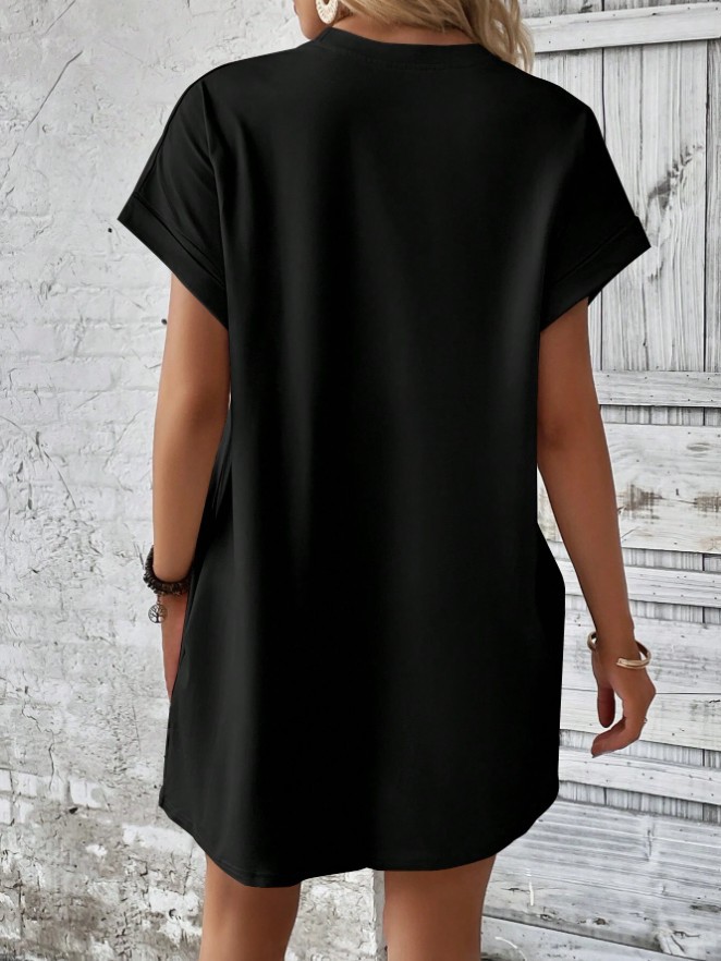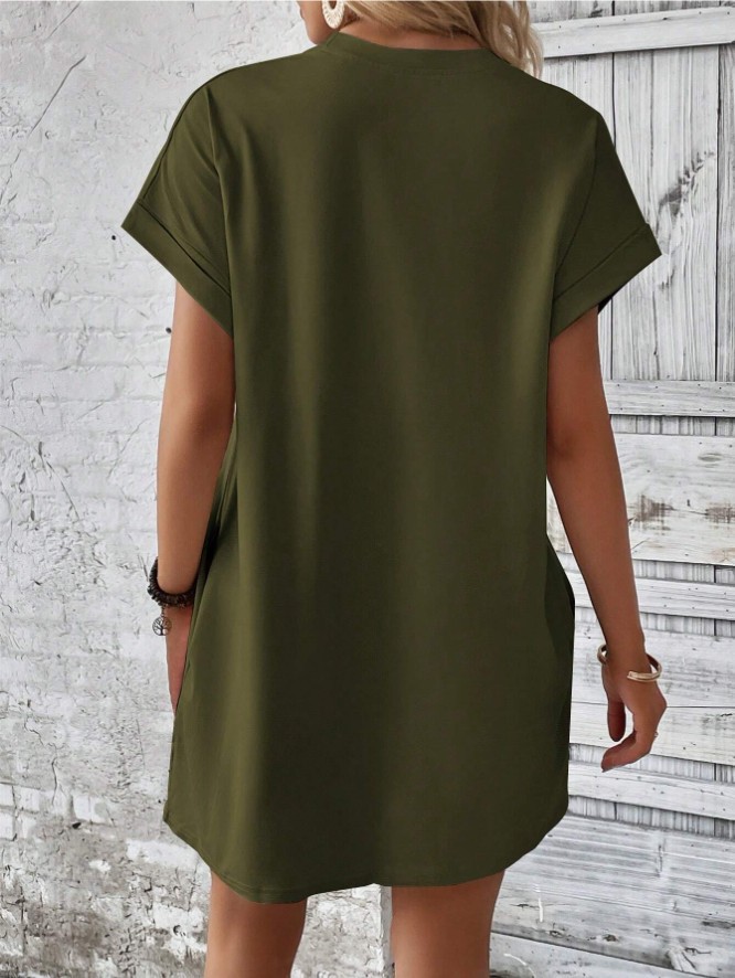 아마존 2024 유럽과 미국의 새로운 캐주얼 솔리드 컬러 라운드 넥 박쥐 소매 보이지 않는 포켓 원피스스토어 가기