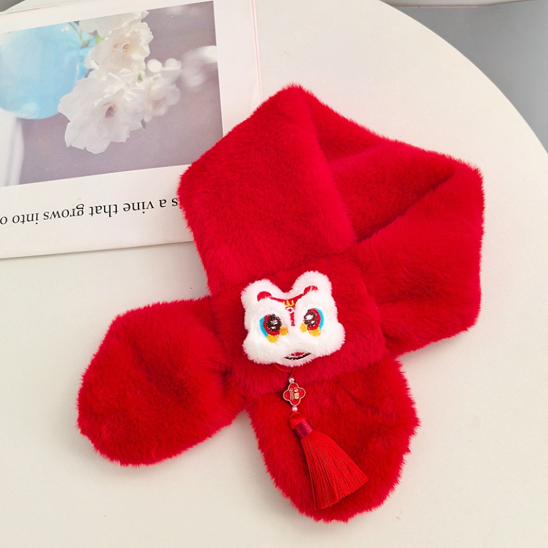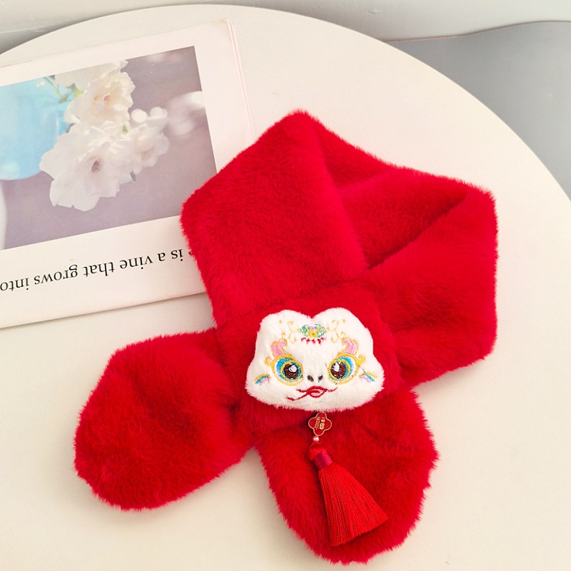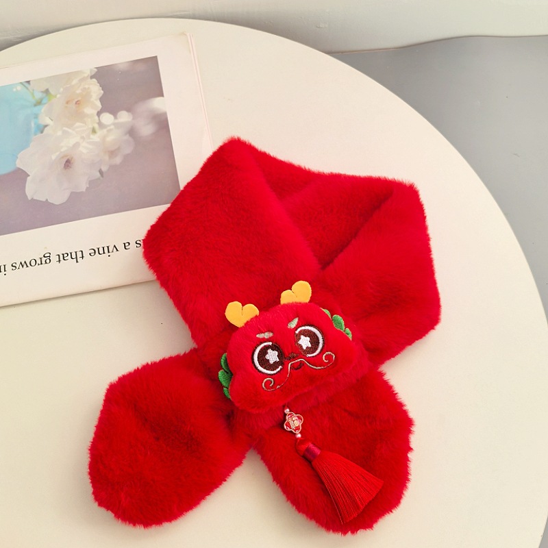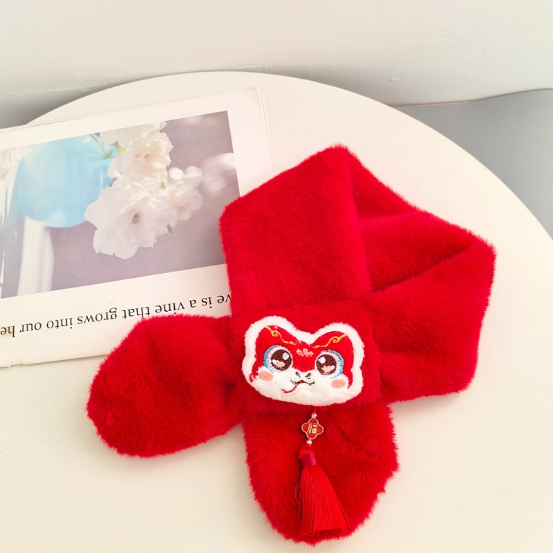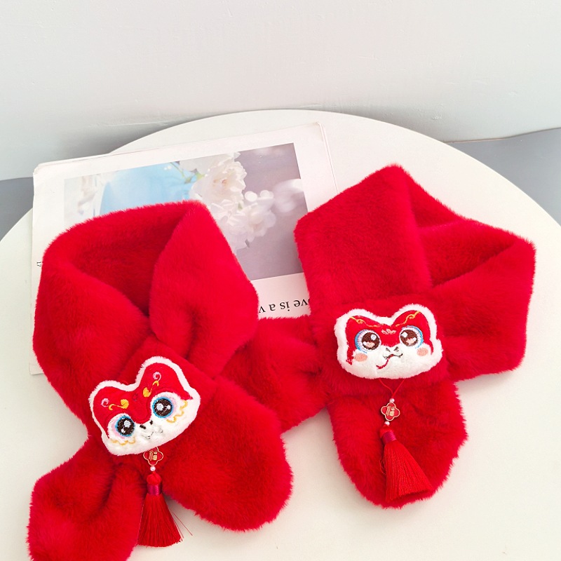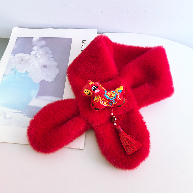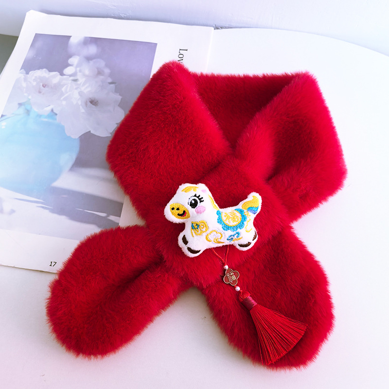 말의 해 새해 빨간색 스카프 어린이와 어른을 위한 부모-자녀용 플러시 스카프 겨울 남녀 어린이용 따뜻한 새해 선물 만화
