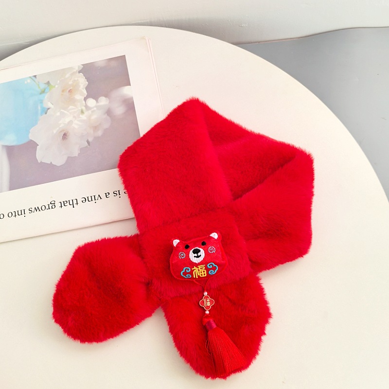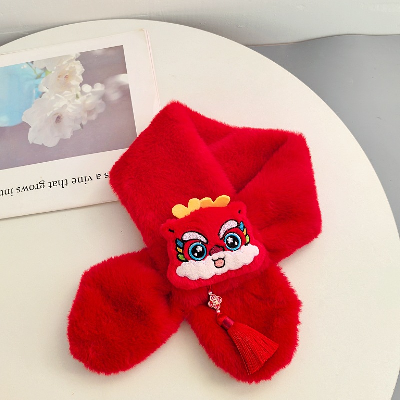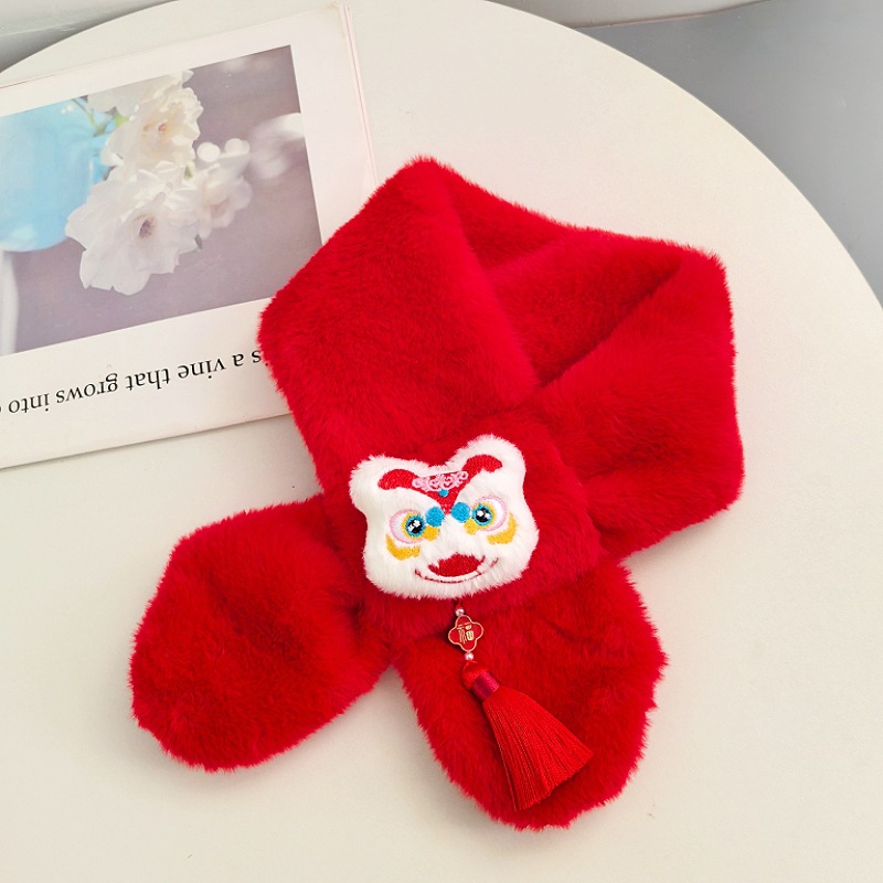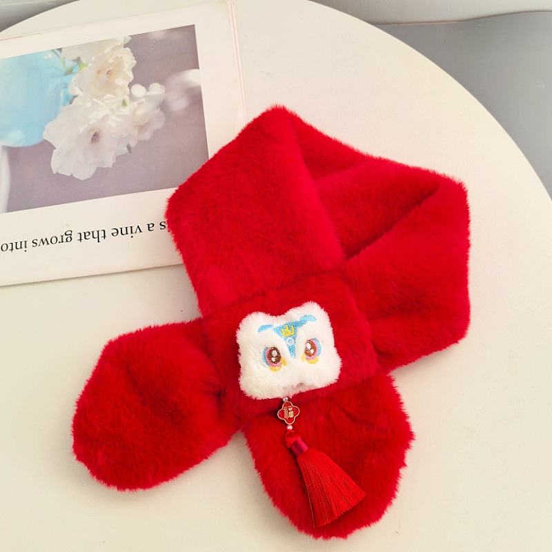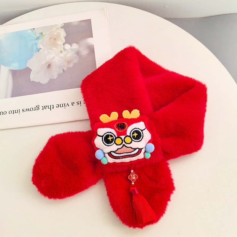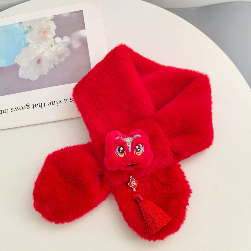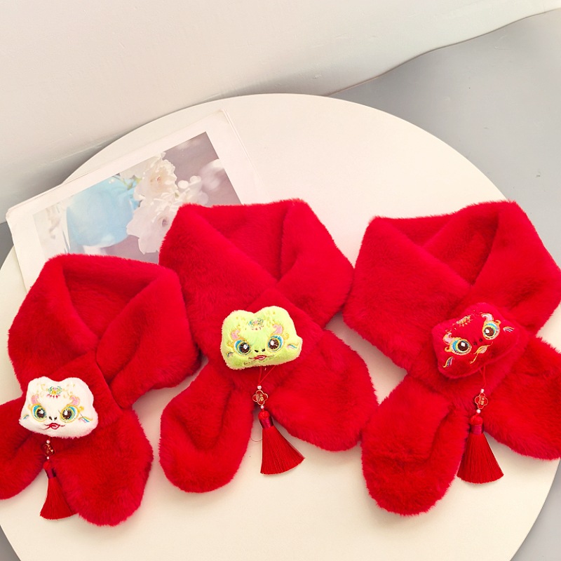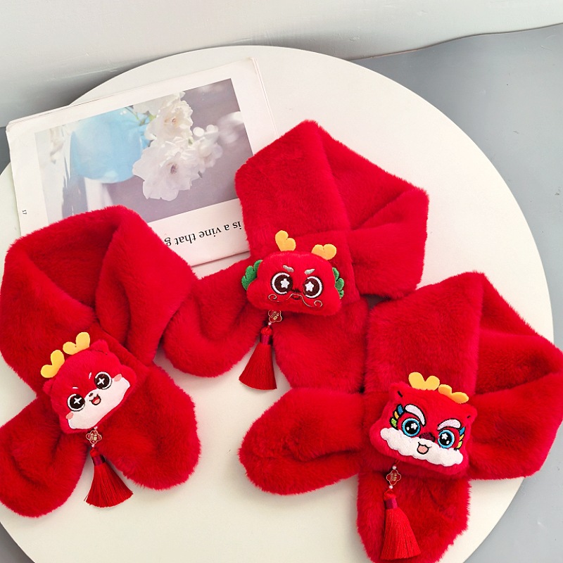 말의 해 새해 빨간색 스카프 어린이와 어른을 위한 부모-자녀용 플러시 스카프 겨울 남녀 어린이용 따뜻한 새해 선물 만화
