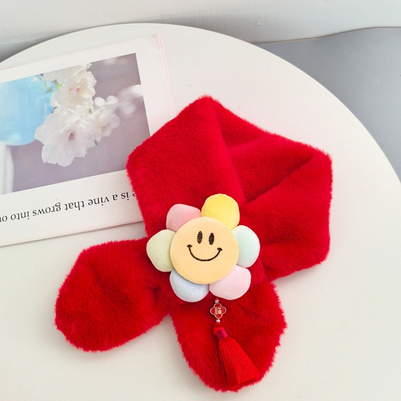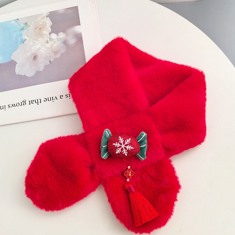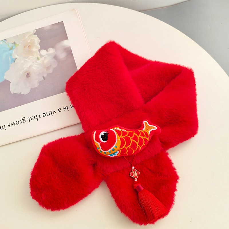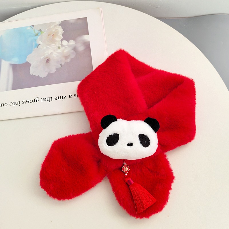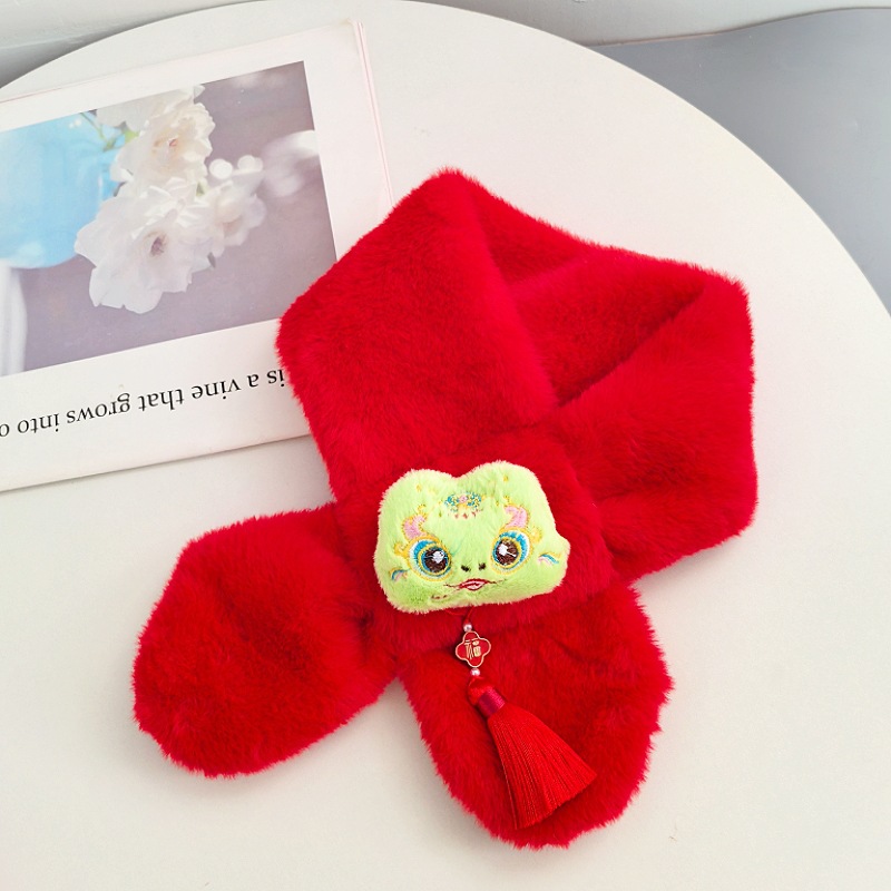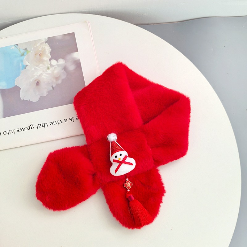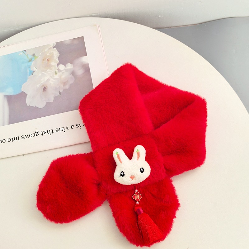 말의 해 새해 빨간색 스카프 어린이와 어른을 위한 부모-자녀용 플러시 스카프 겨울 남녀 어린이용 따뜻한 새해 선물 만화
