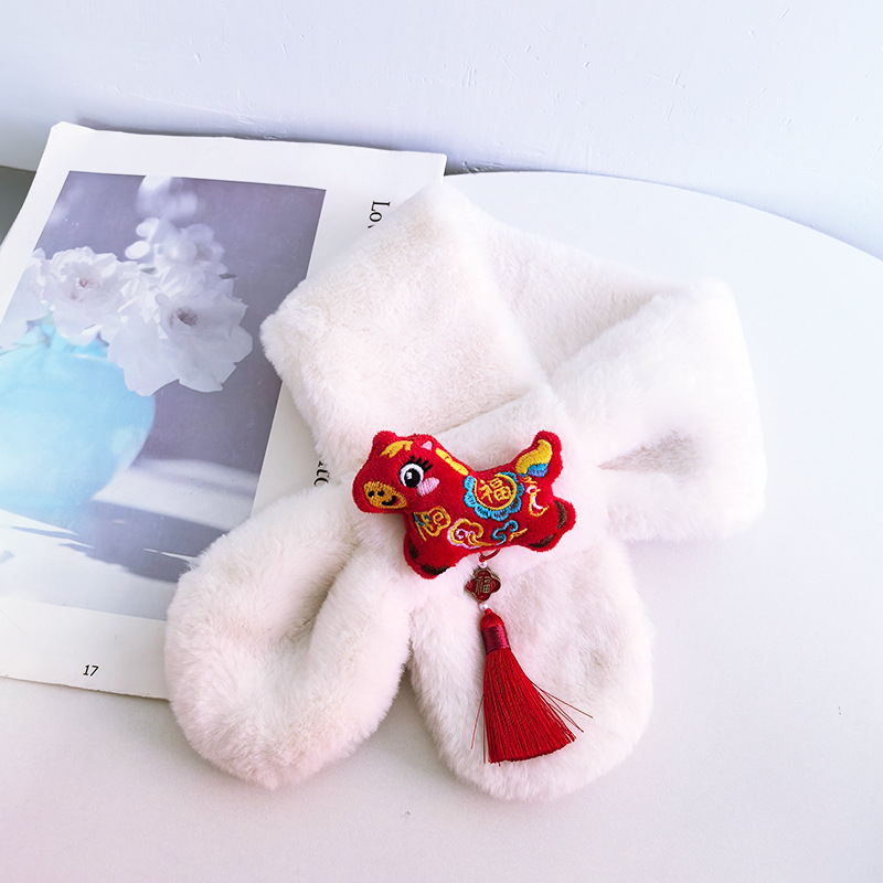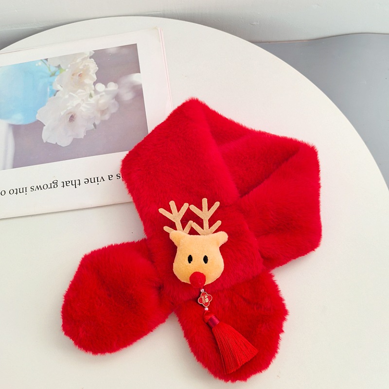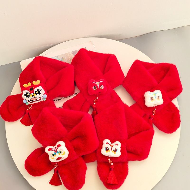말의 해 새해 빨간색 스카프 어린이와 어른을 위한 부모-자녀용 플러시 스카프 겨울 남녀 어린이용 따뜻한 새해 선물 만화스토어 가기