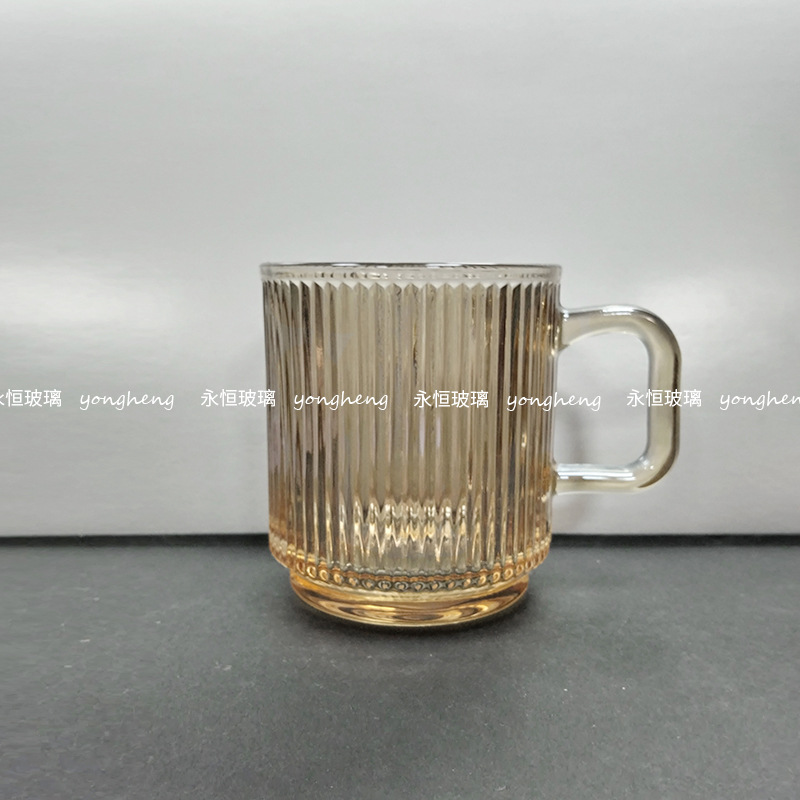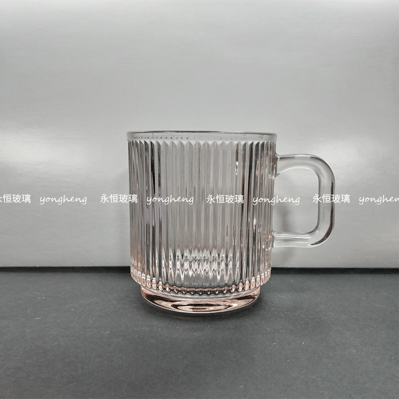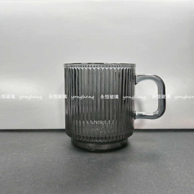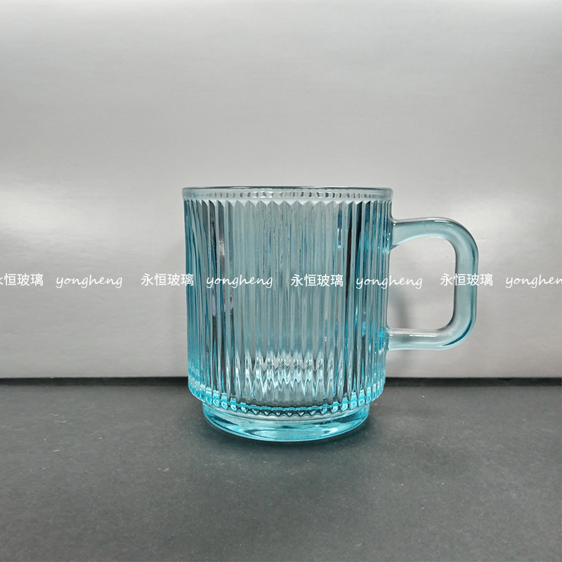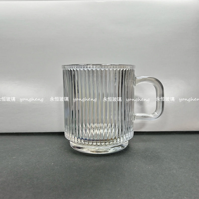 손잡이가있는 세로 줄무늬 유리 커피 컵 높은 아름다움 가치 마시는 컵 구강 세정제 컵 마스크 펜 가정용 우유 컵
