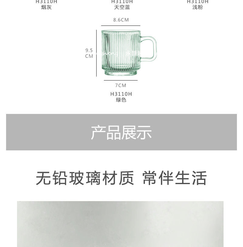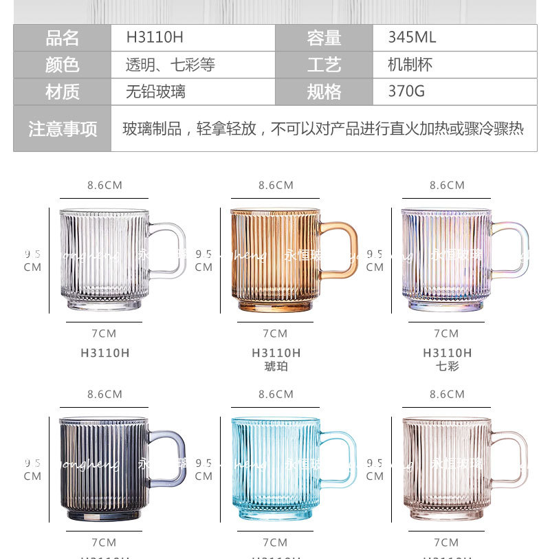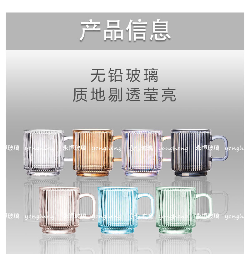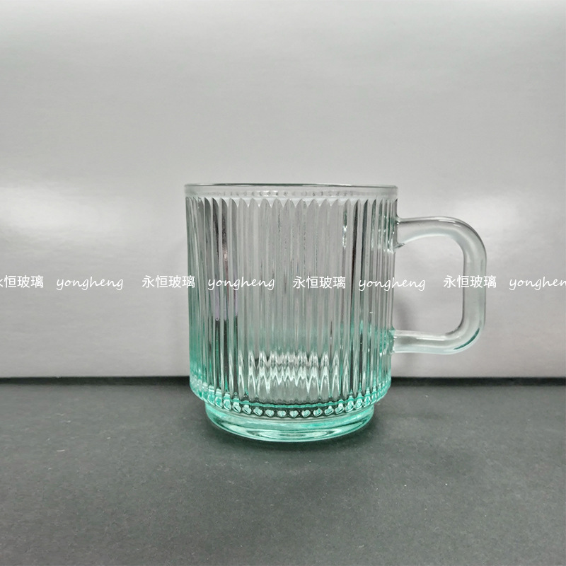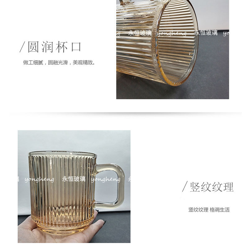 손잡이가있는 세로 줄무늬 유리 커피 컵 높은 아름다움 가치 마시는 컵 구강 세정제 컵 마스크 펜 가정용 우유 컵