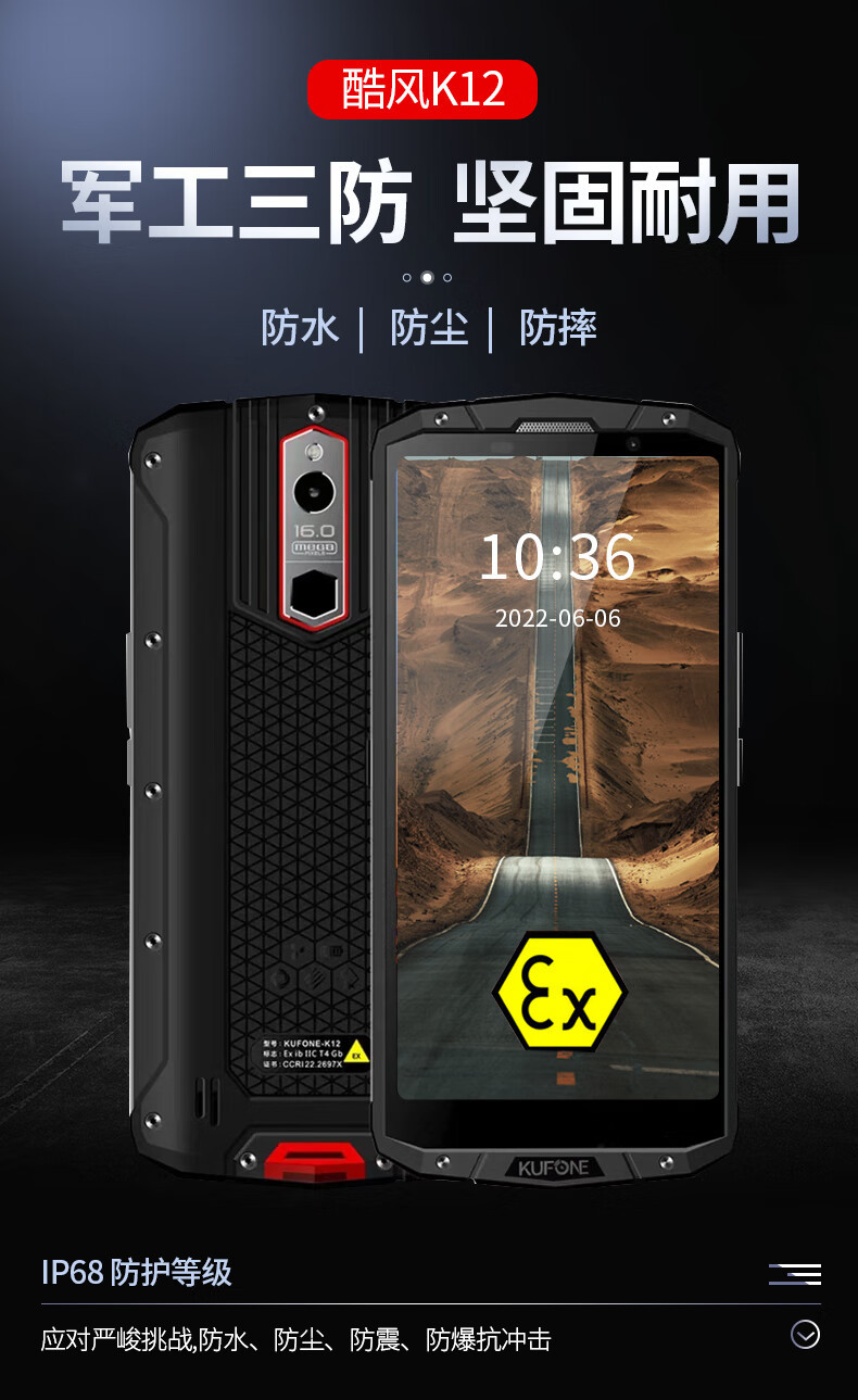 NFC 천연 가스 산업 휴대 전화를 가진 내재적으로 안전한 폭발 방지 휴대 전화 시원한 바람 K12 netcom 4G 방진 및 방수 IP68