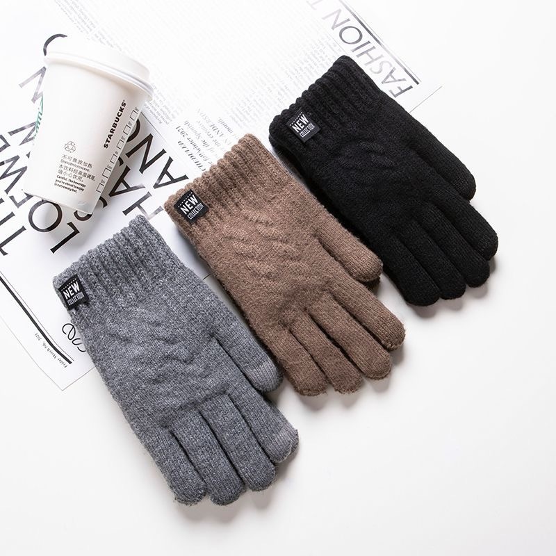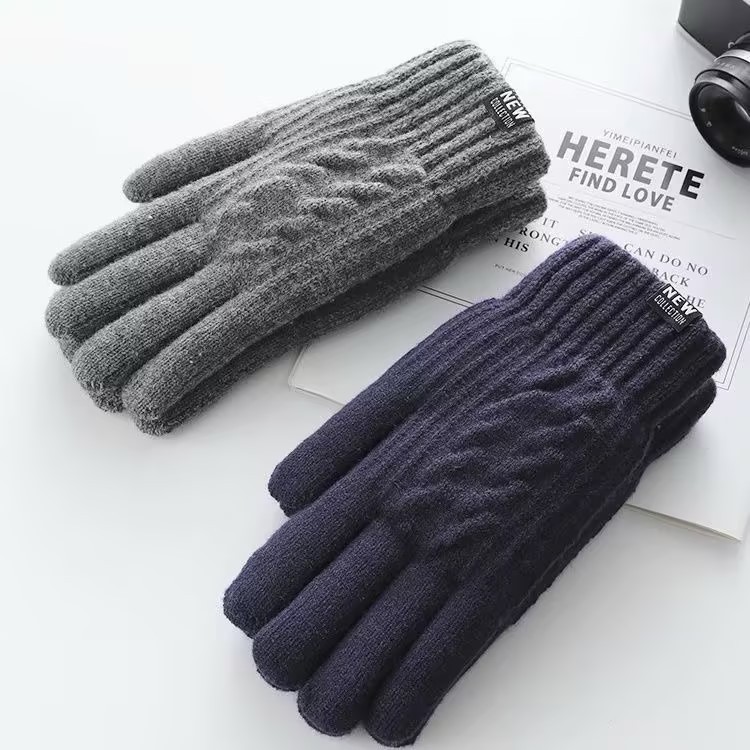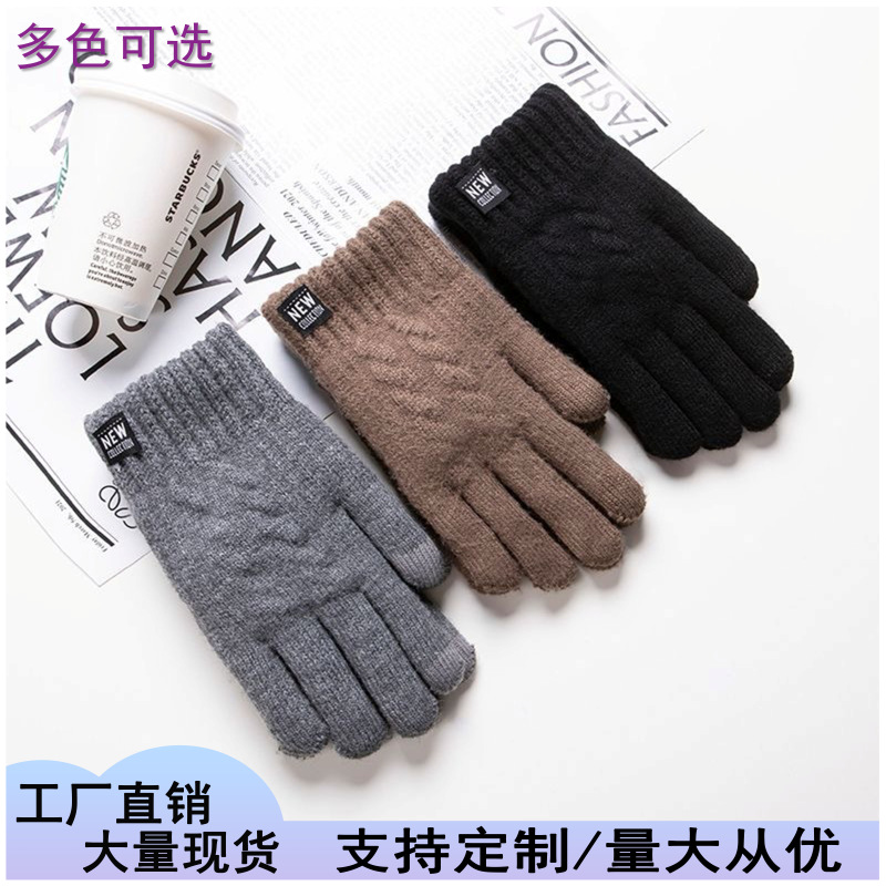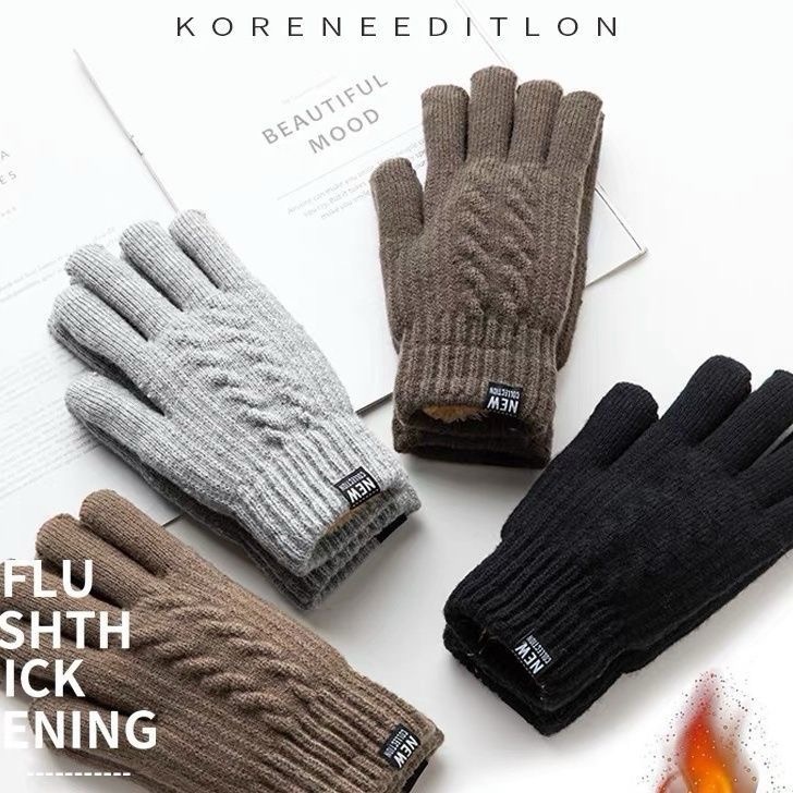새로운 양모 장갑 니트 기모 두꺼운 터치 스크린 겨울 라이딩 냉장 따뜻한 방풍 전체 손가락 겨울 장갑