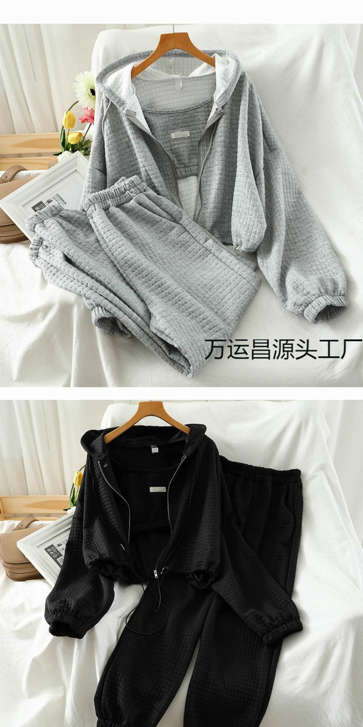 초가을 홍콩 스타일 레저 세트 여성 복고풍 2024 새로운 레저 스포츠 후드 코트 레깅스스토어 가기