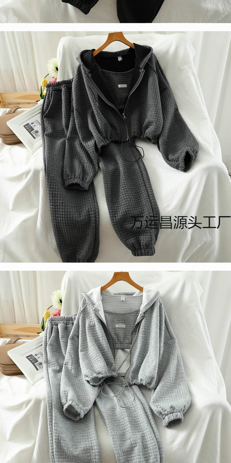 초가을 홍콩 스타일 레저 세트 여성 복고풍 2024 새로운 레저 스포츠 후드 코트 레깅스