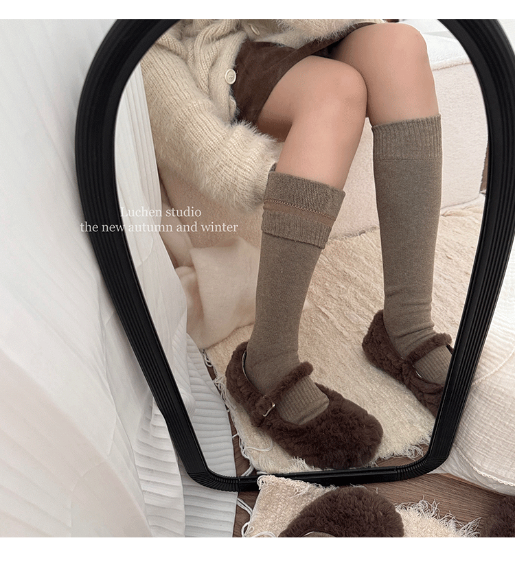 긴 존스에 작별 인사 "두꺼운 고층 무릎 양말 여성용 가을/겨울 허벅지 양말 슬림 JK 무릎 신 면 양말