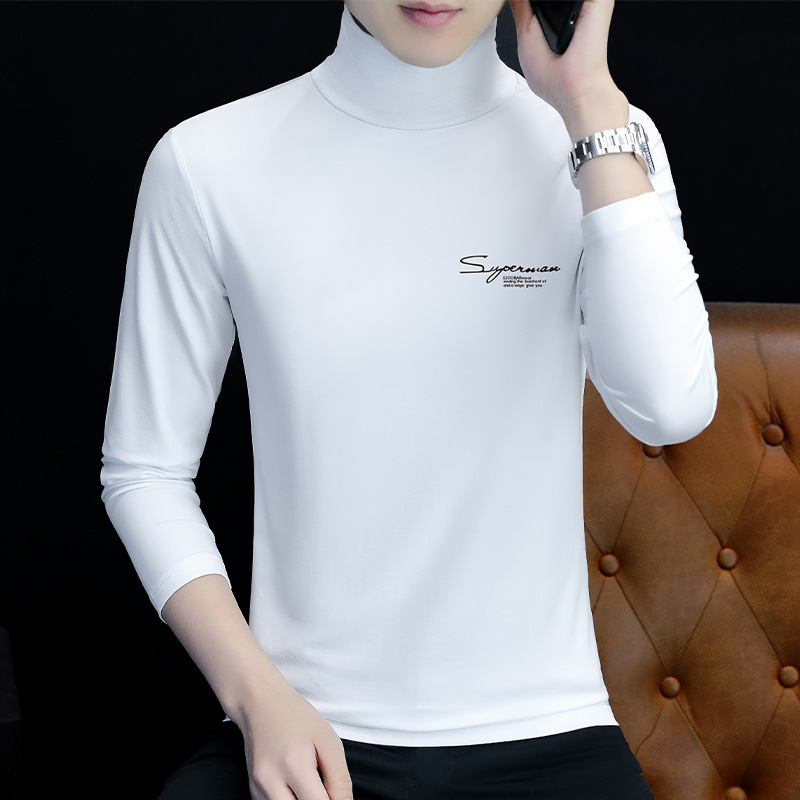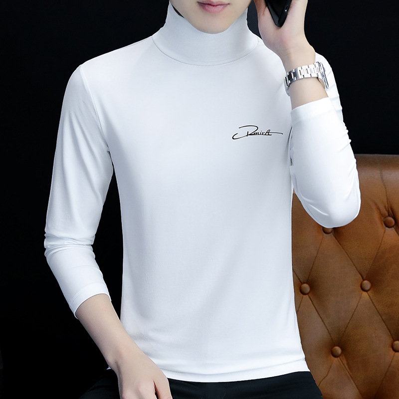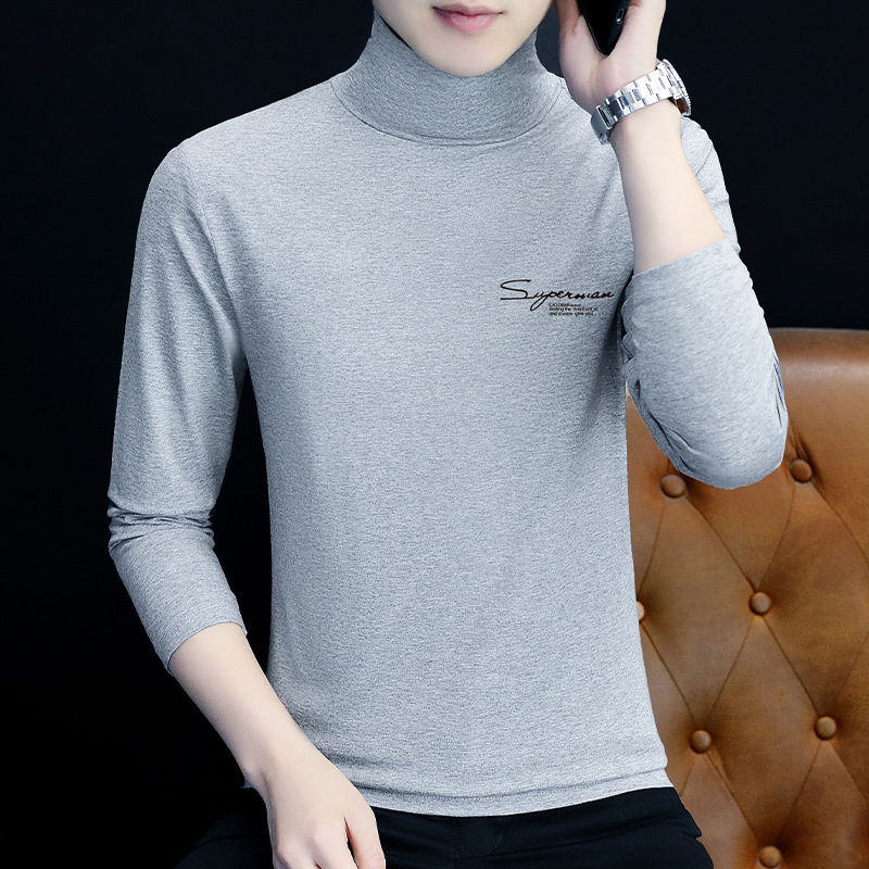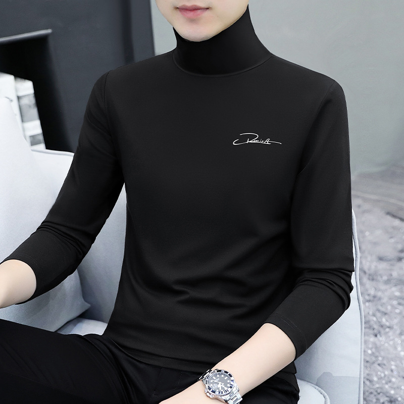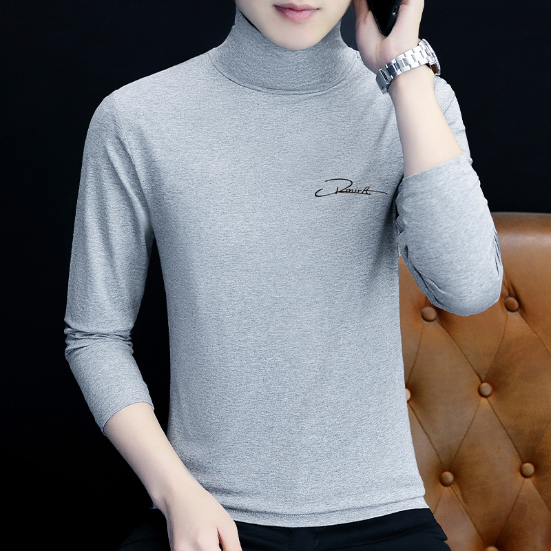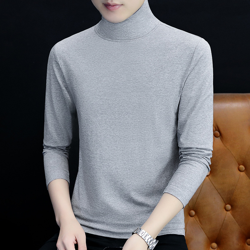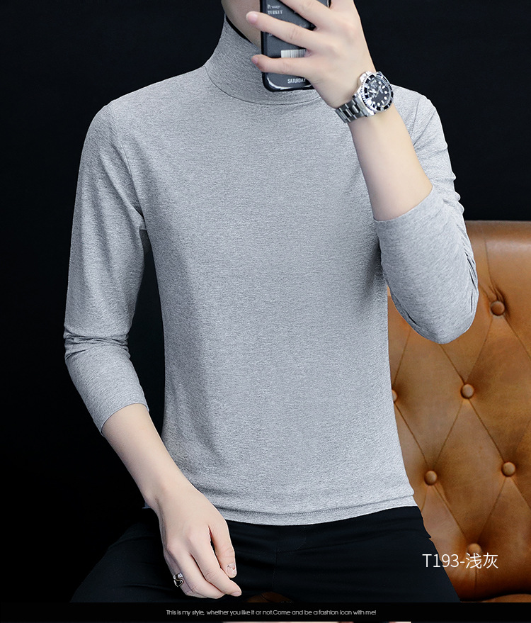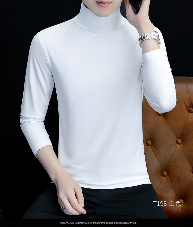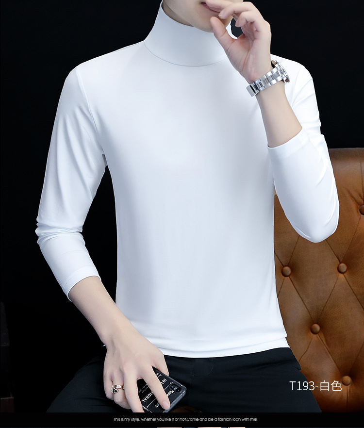 하이 칼라 남성용 긴팔 티셔츠 스트레치 남성 하의 셔츠 봄과 가을 캐주얼 면 남성 티셔츠 탑 옷 조수 도매