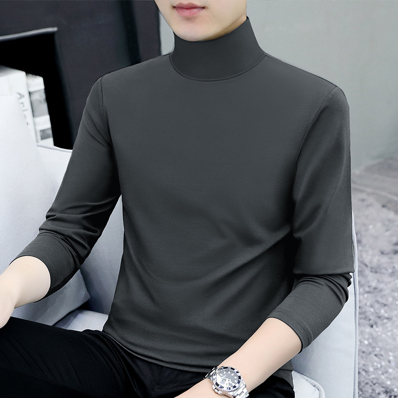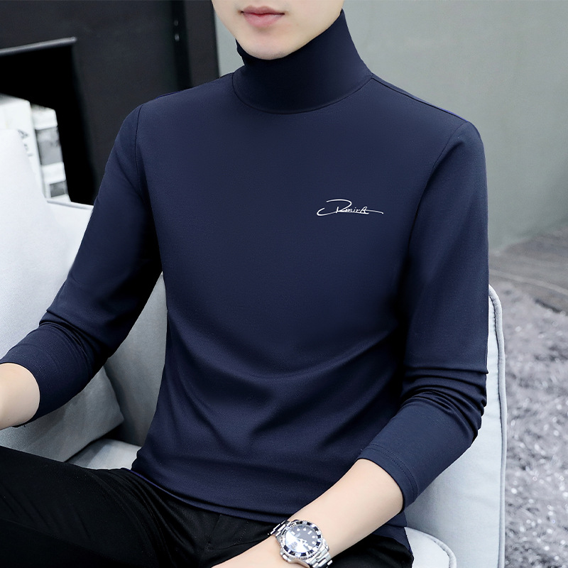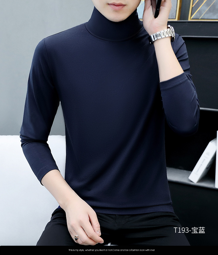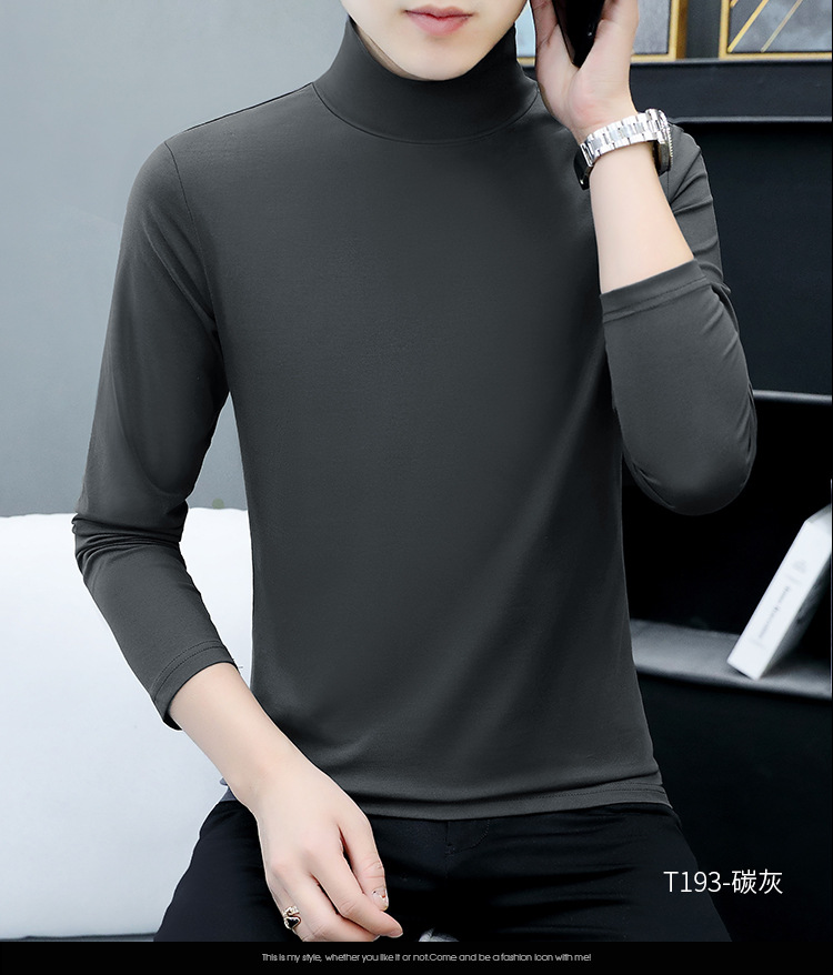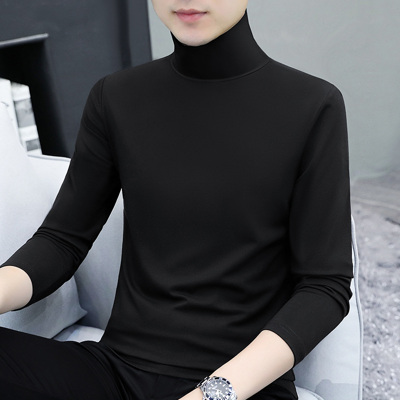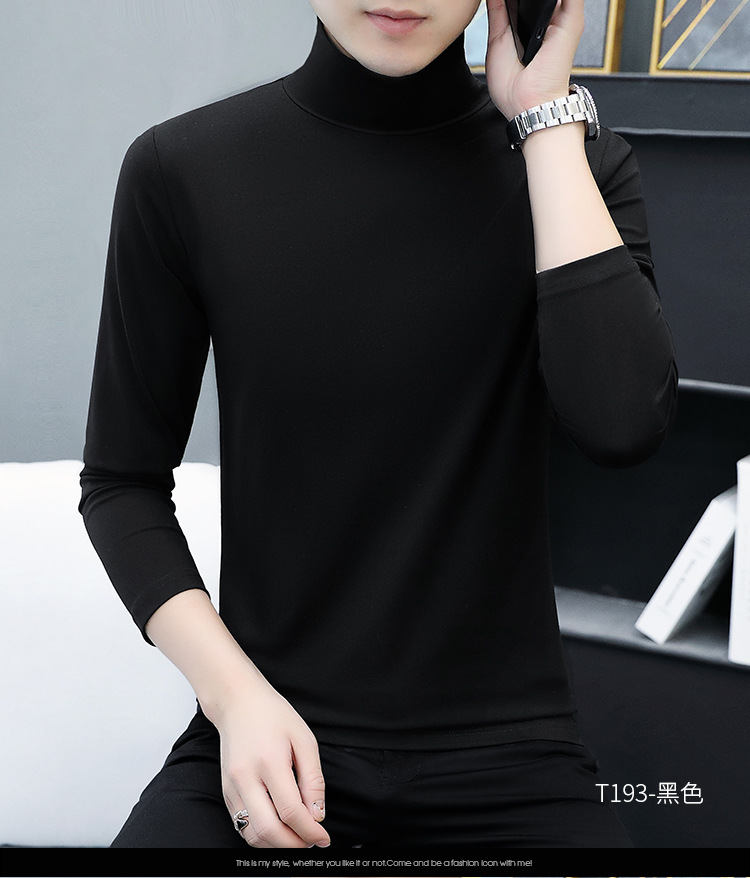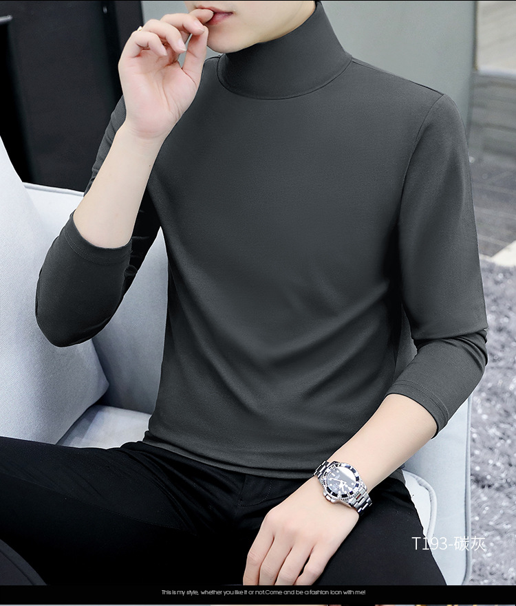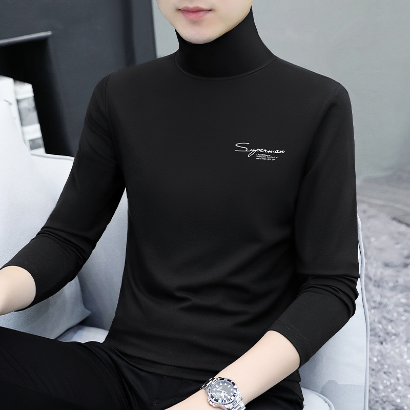 하이 칼라 남성용 긴팔 티셔츠 스트레치 남성 하의 셔츠 봄과 가을 캐주얼 면 남성 티셔츠 탑 옷 조수 도매