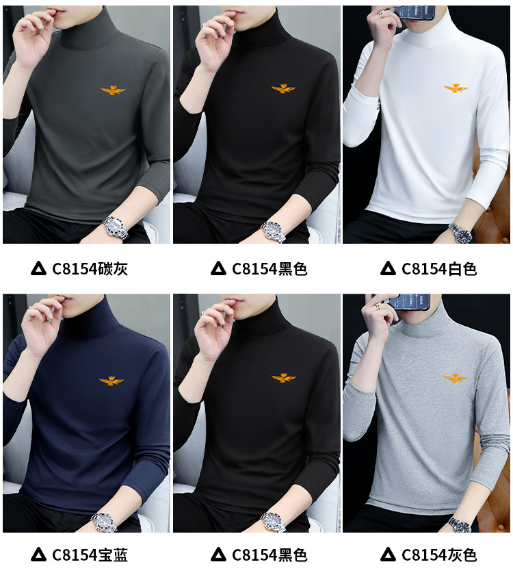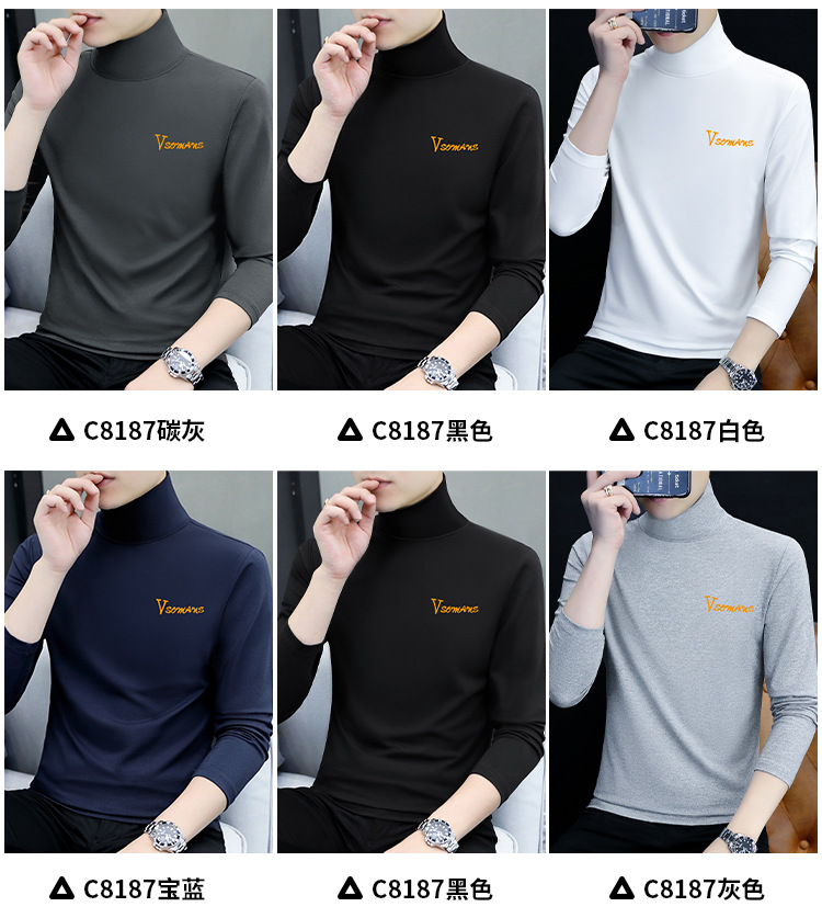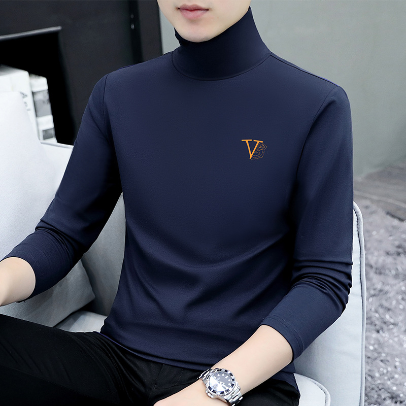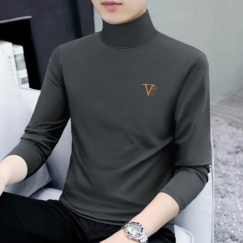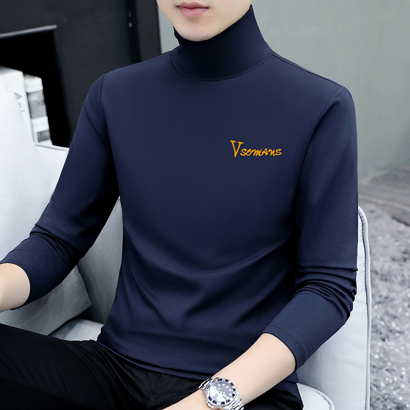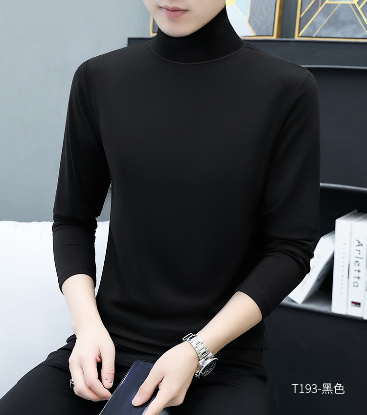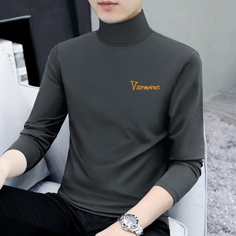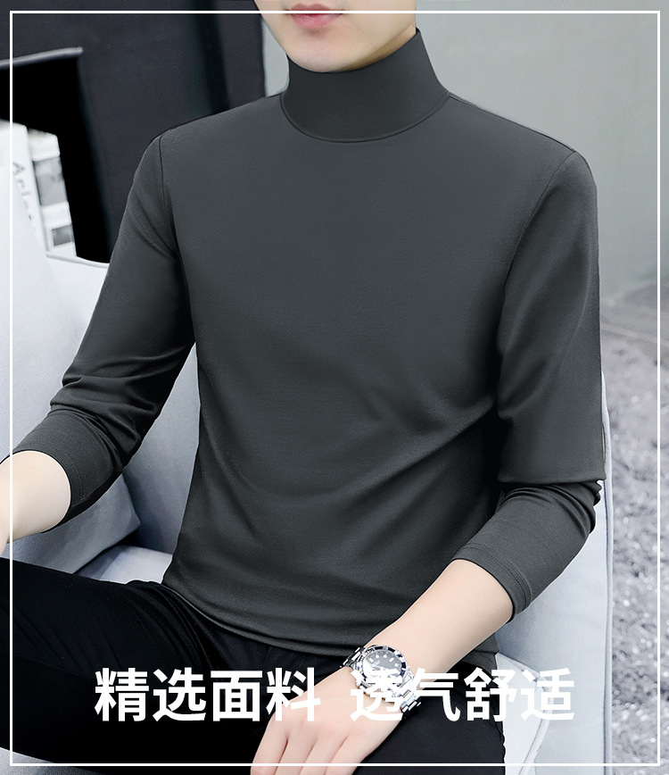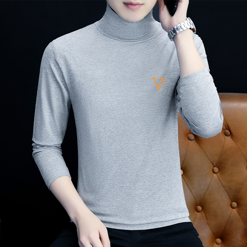 하이 칼라 남성용 긴팔 티셔츠 스트레치 남성 하의 셔츠 봄과 가을 캐주얼 면 남성 티셔츠 탑 옷 조수 도매