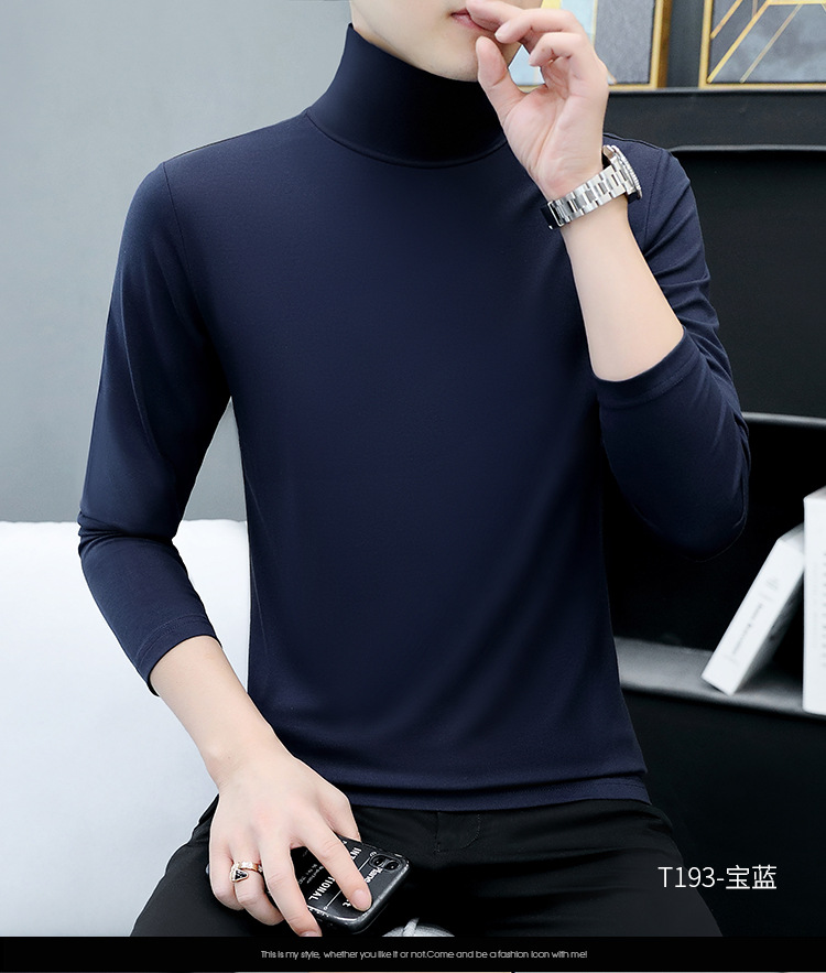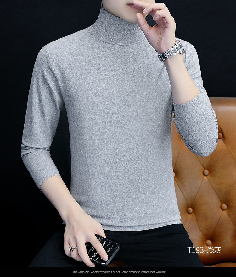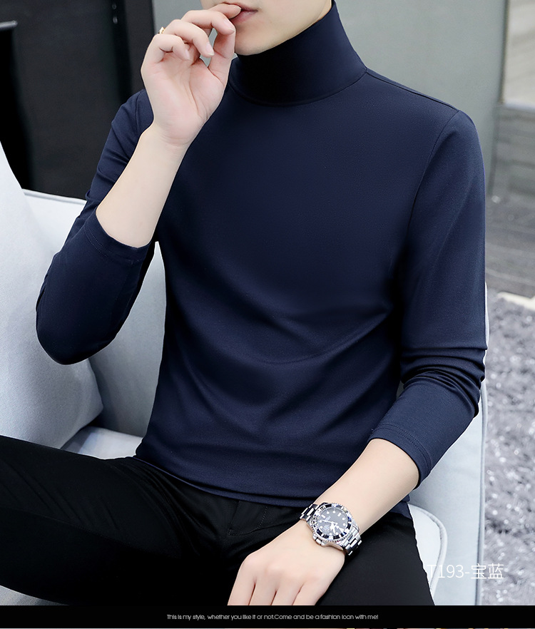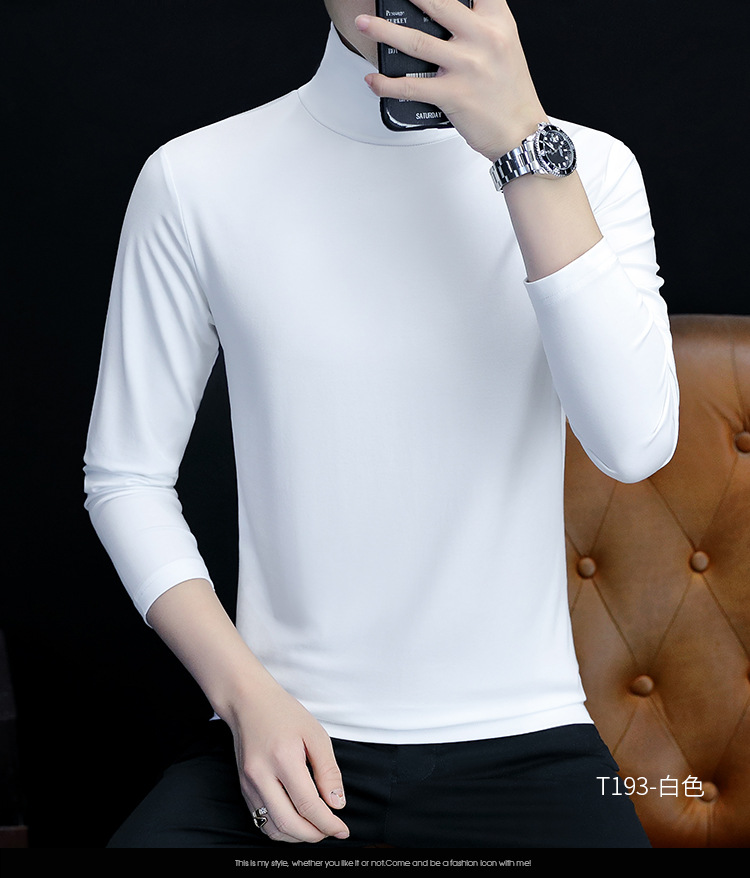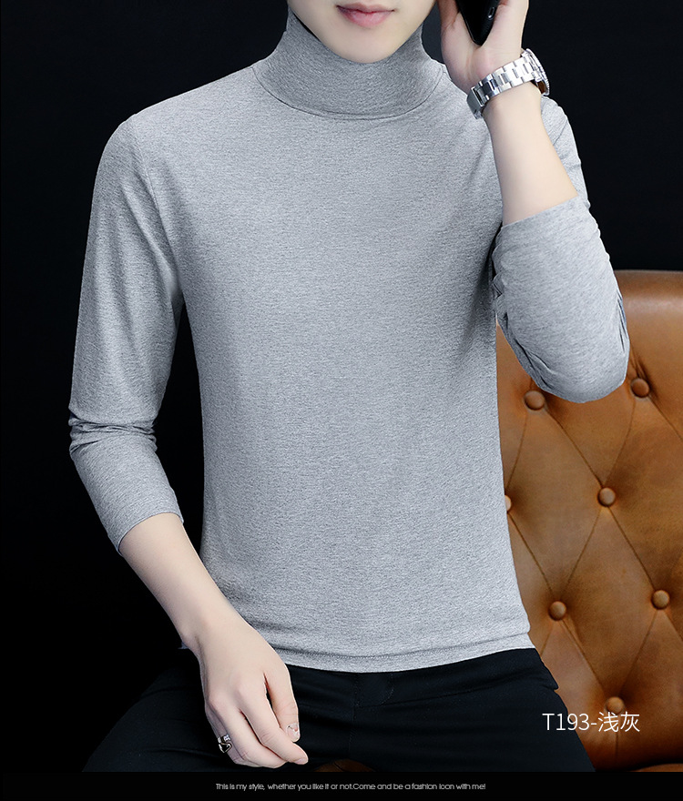 하이 칼라 남성용 긴팔 티셔츠 스트레치 남성 하의 셔츠 봄과 가을 캐주얼 면 남성 티셔츠 탑 옷 조수 도매스토어 가기