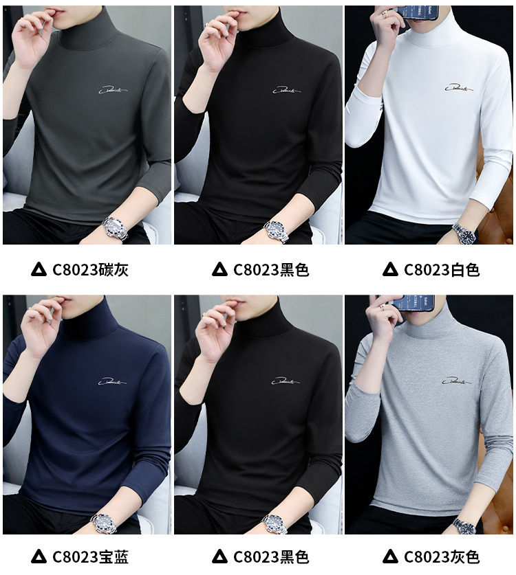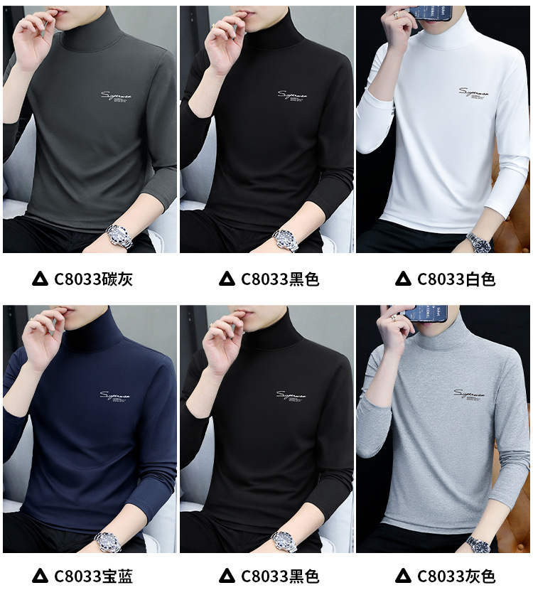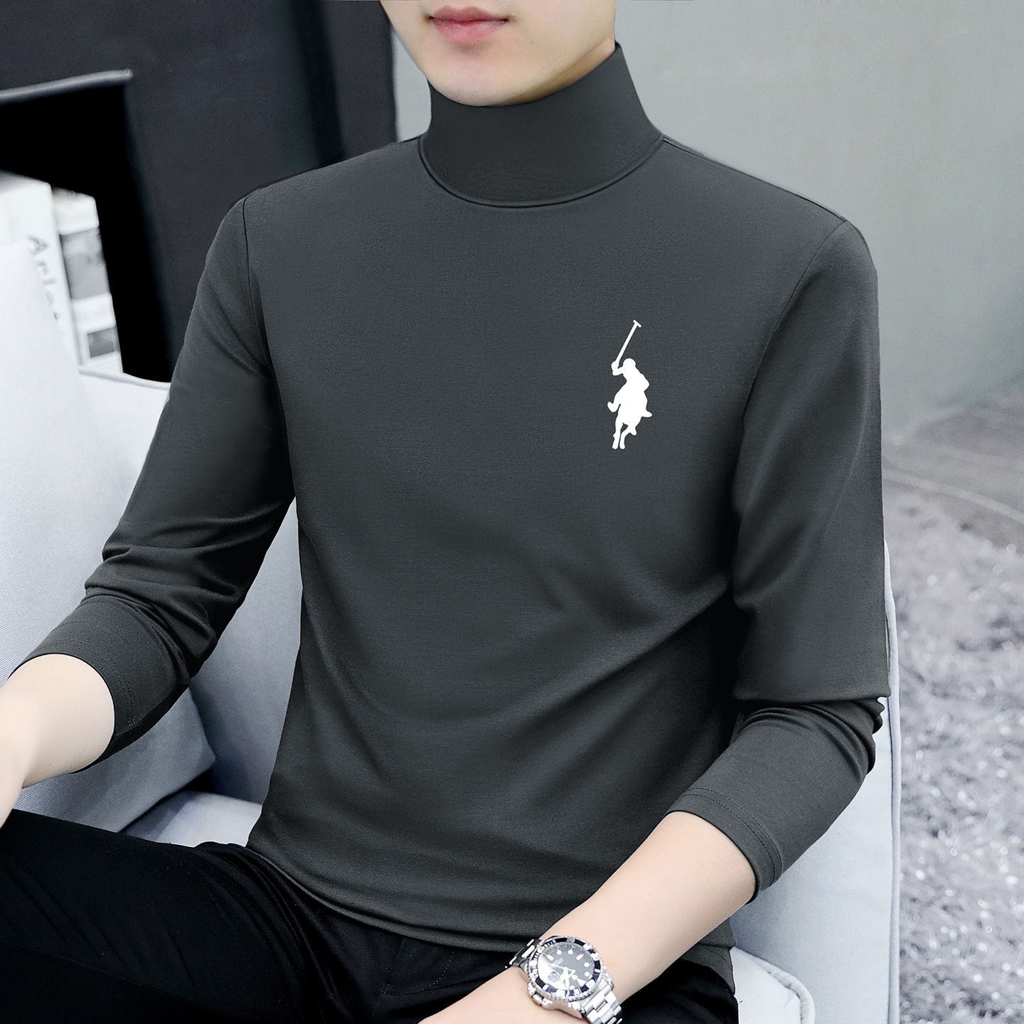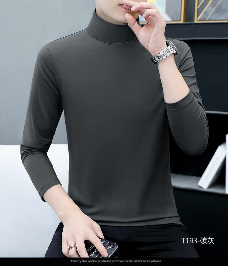 하이 칼라 남성용 긴팔 티셔츠 스트레치 남성 하의 셔츠 봄과 가을 캐주얼 면 남성 티셔츠 탑 옷 조수 도매스토어 가기