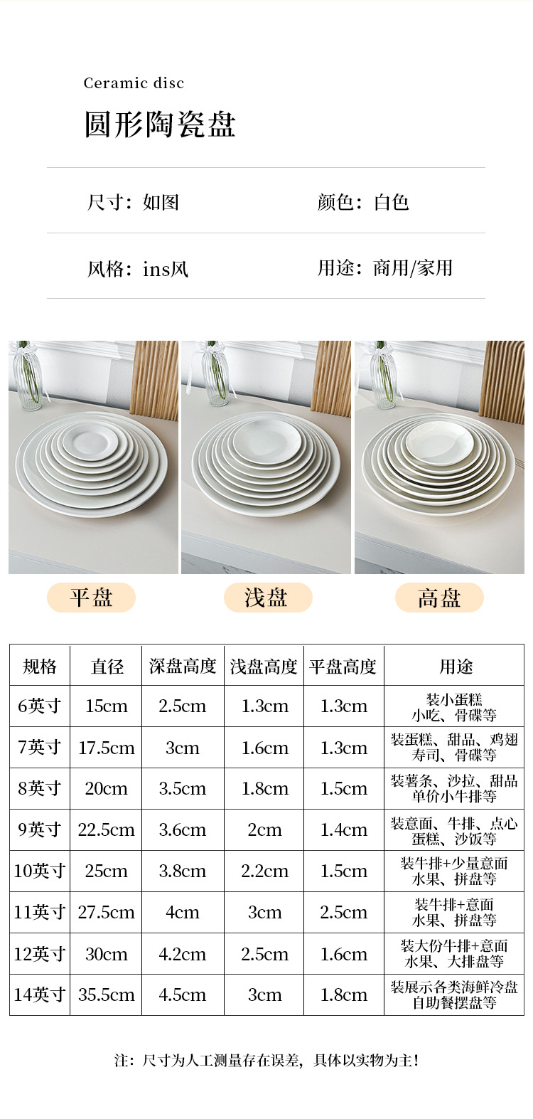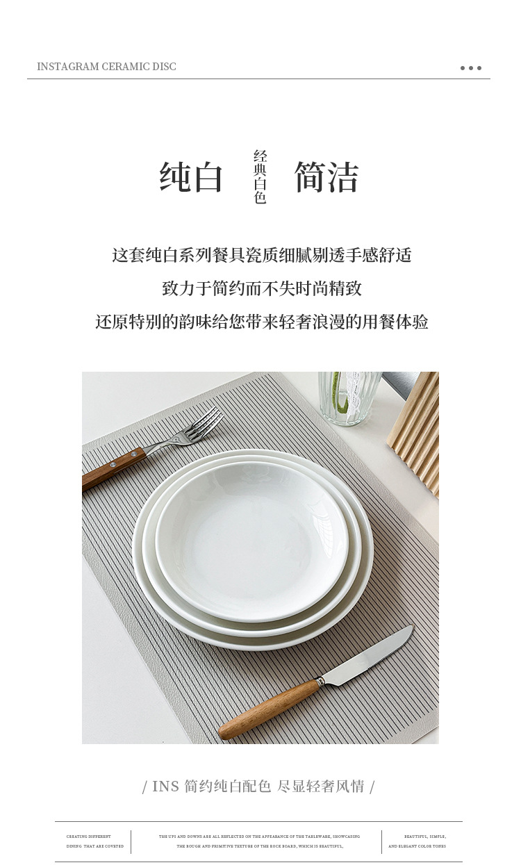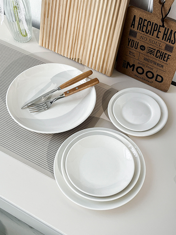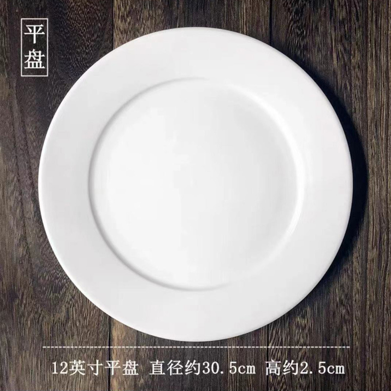 스테이크 플레이트 순수 화이트 세라믹 라운드 웨스턴 플레이트 상업 접시 플레이트 얕은 플레이트 플랫 플레이트 웨스턴 식기
