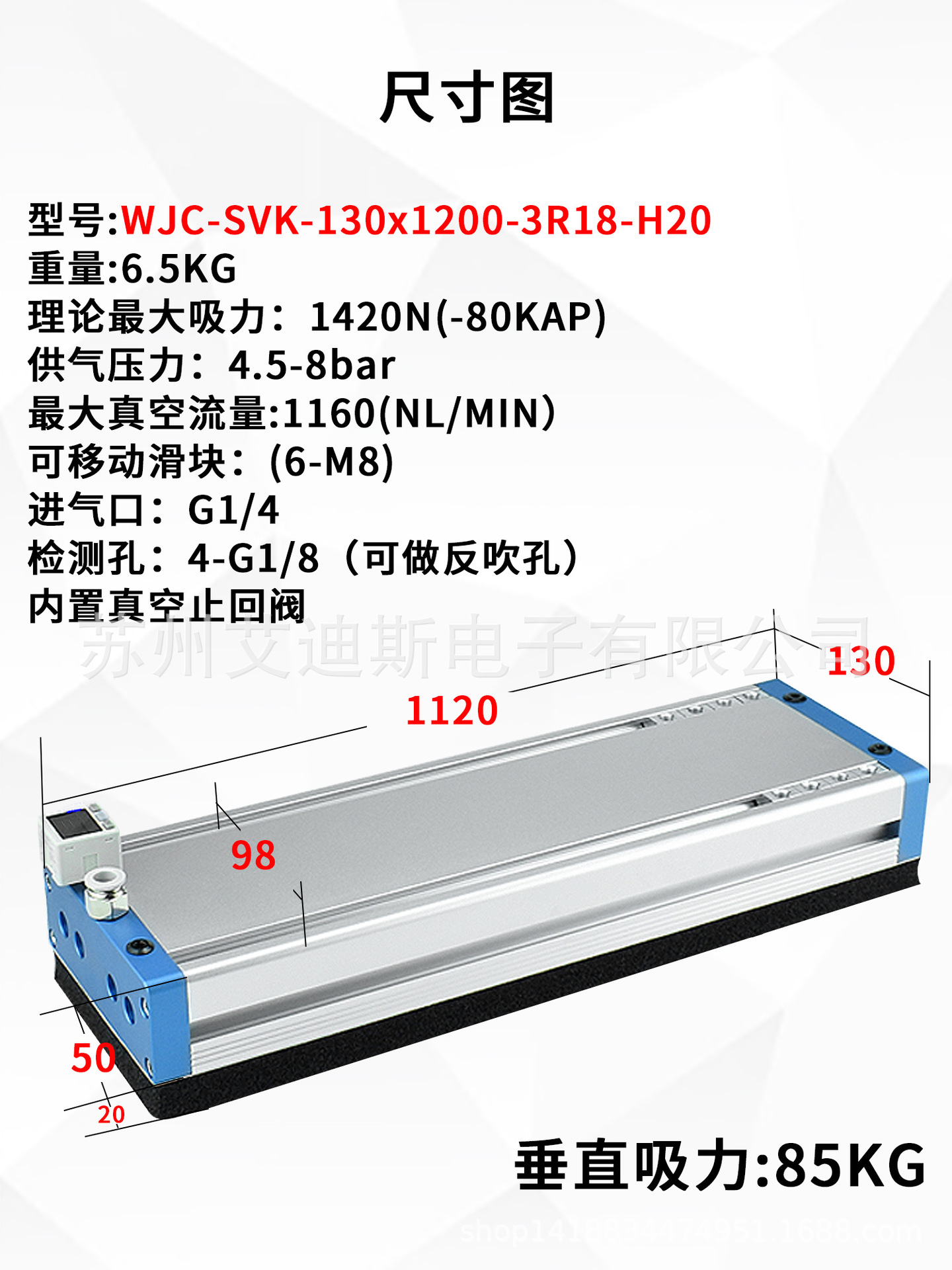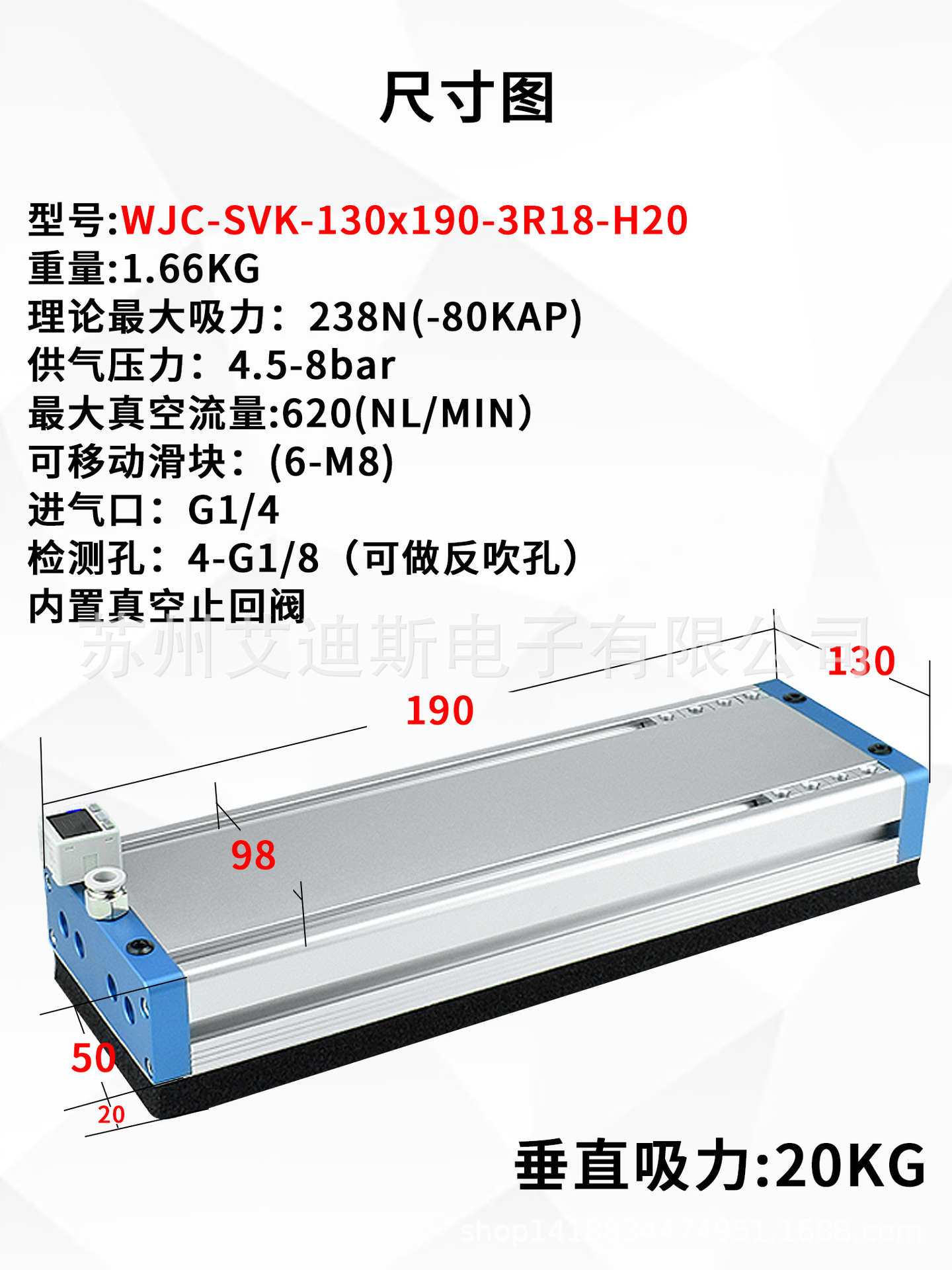 • WJC-SVK-130 * 190-5R18-H20 (진공 내장 구멍 5 열)-