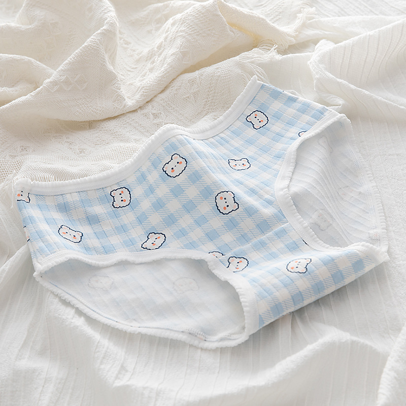 순수한 파란색 달콤한 귀여운 곰 소녀 속옷 중간 허리 엉덩이 브리프 코튼 크로트 중간 허리 숙녀 속옷스토어 가기