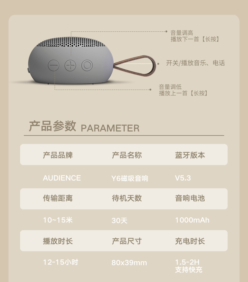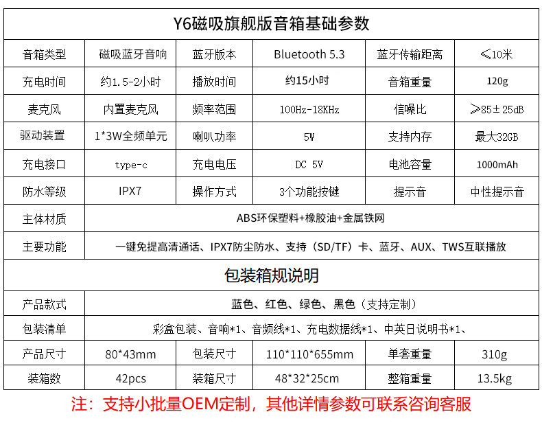 Odeen의 새로운 휴대용 자기 주방 블루투스 스피커 서브우퍼 컴퓨터 데스크탑 무선 스피커
