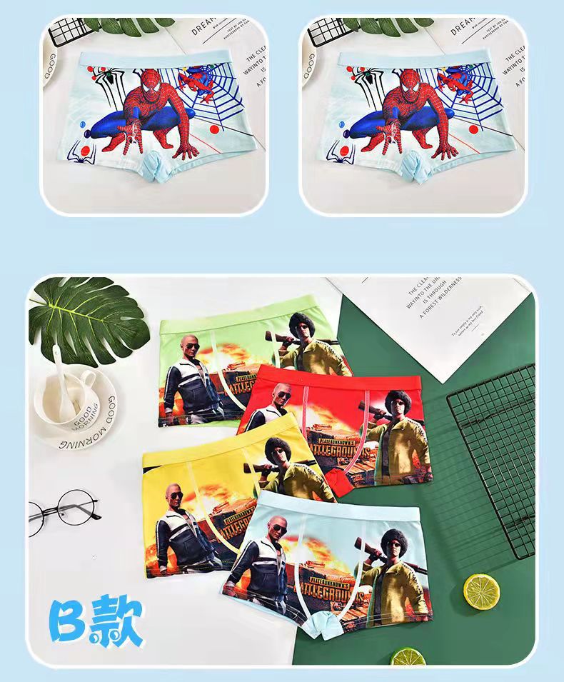 남아용 사각팬티 3D 열전사 만화 캐릭터 통기성 부드러운 넓은 허리밴드 사각 아동 속옷 중소형 어린이용 얇은 스타일