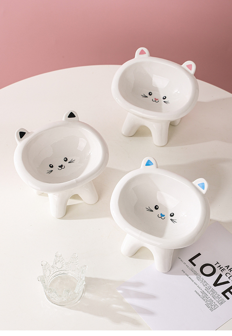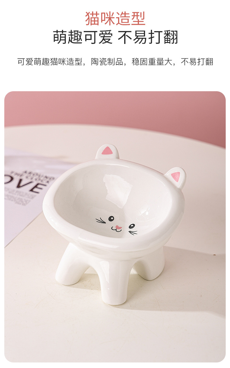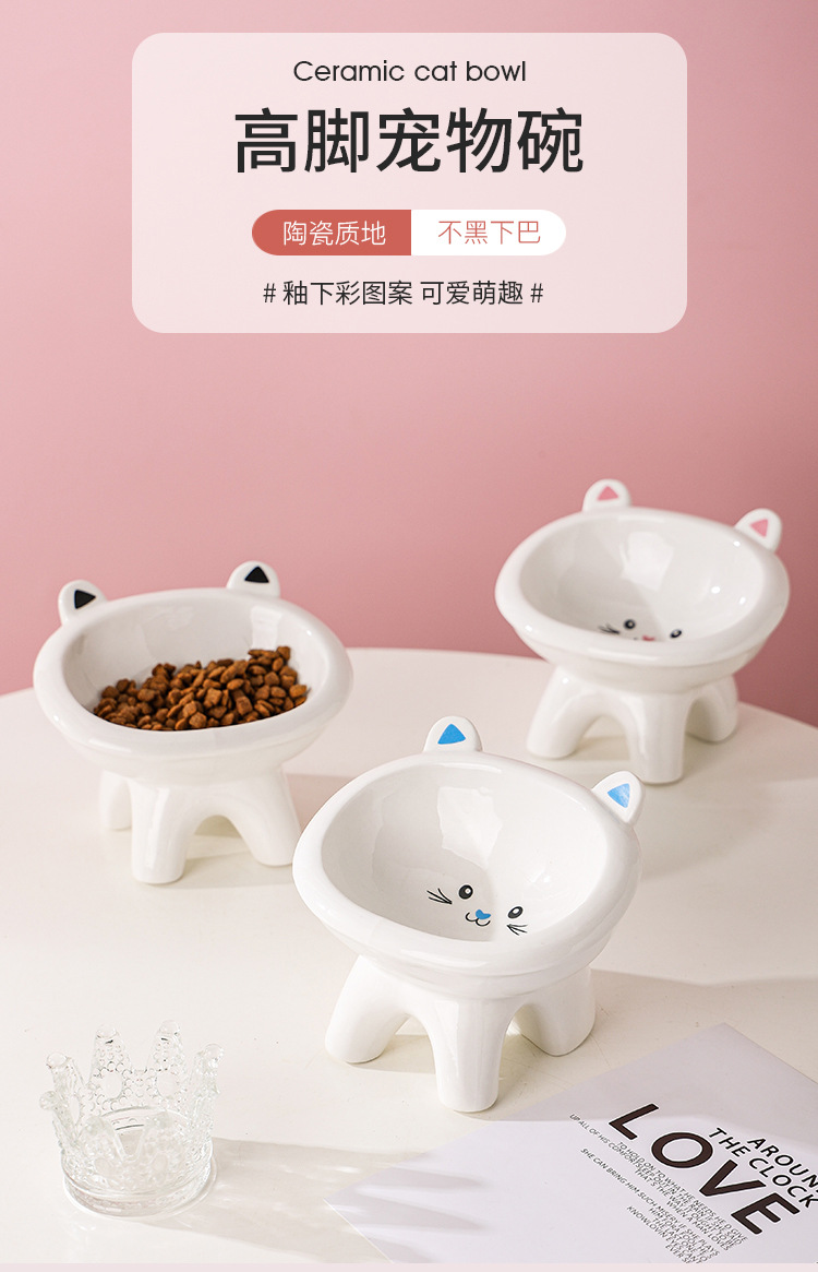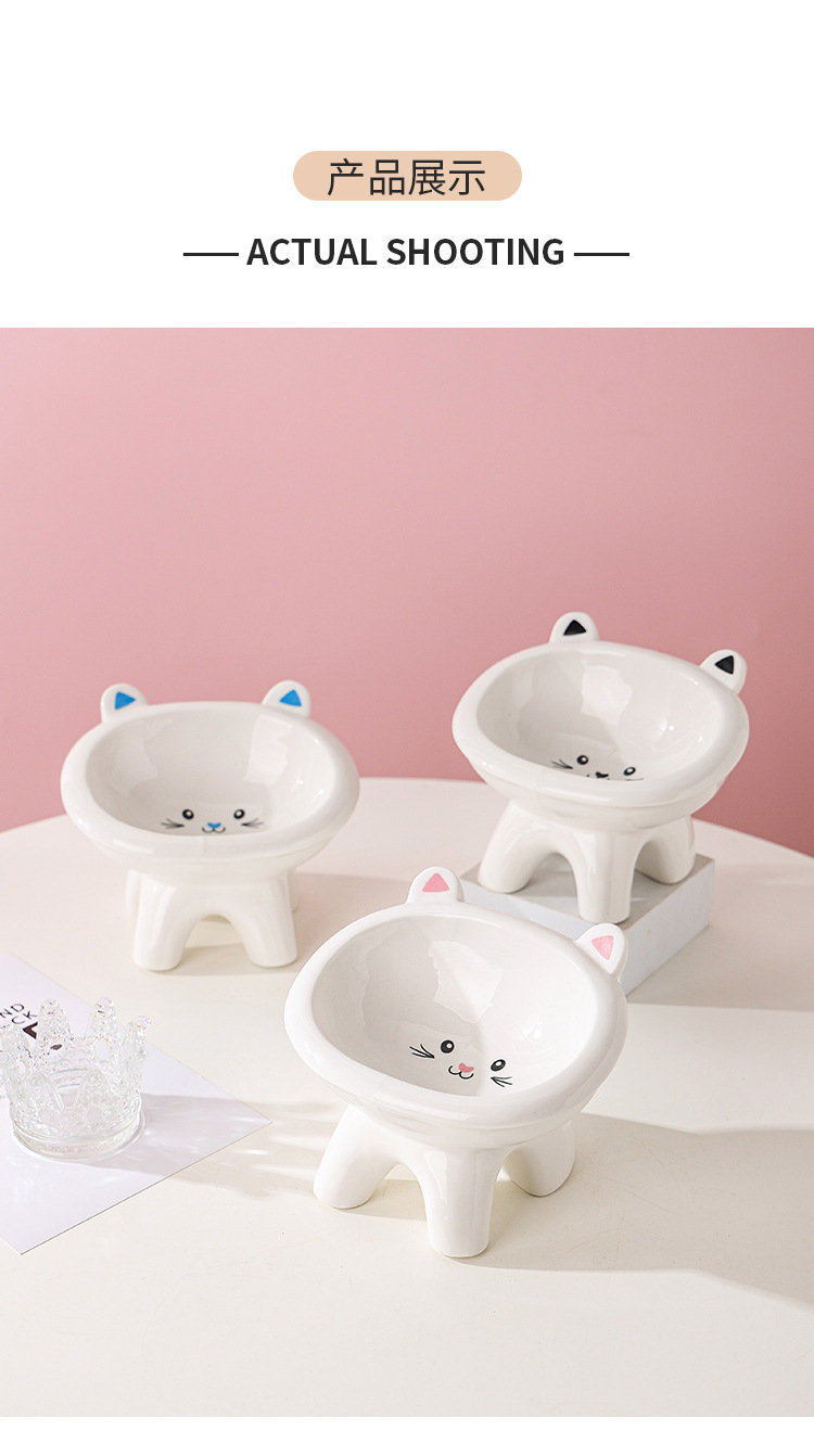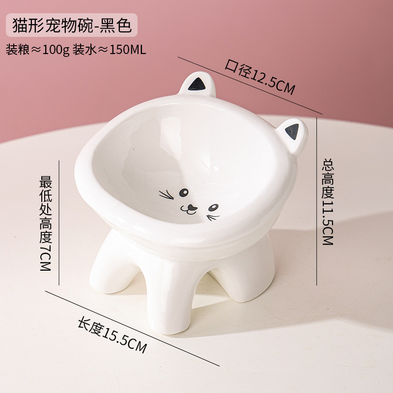 고양이 그릇 세라믹 노크 방지 대구경 고양이 물 그릇 고양이 음식 분지 개 그릇 보호 경추 안티 블랙 턱스토어 가기