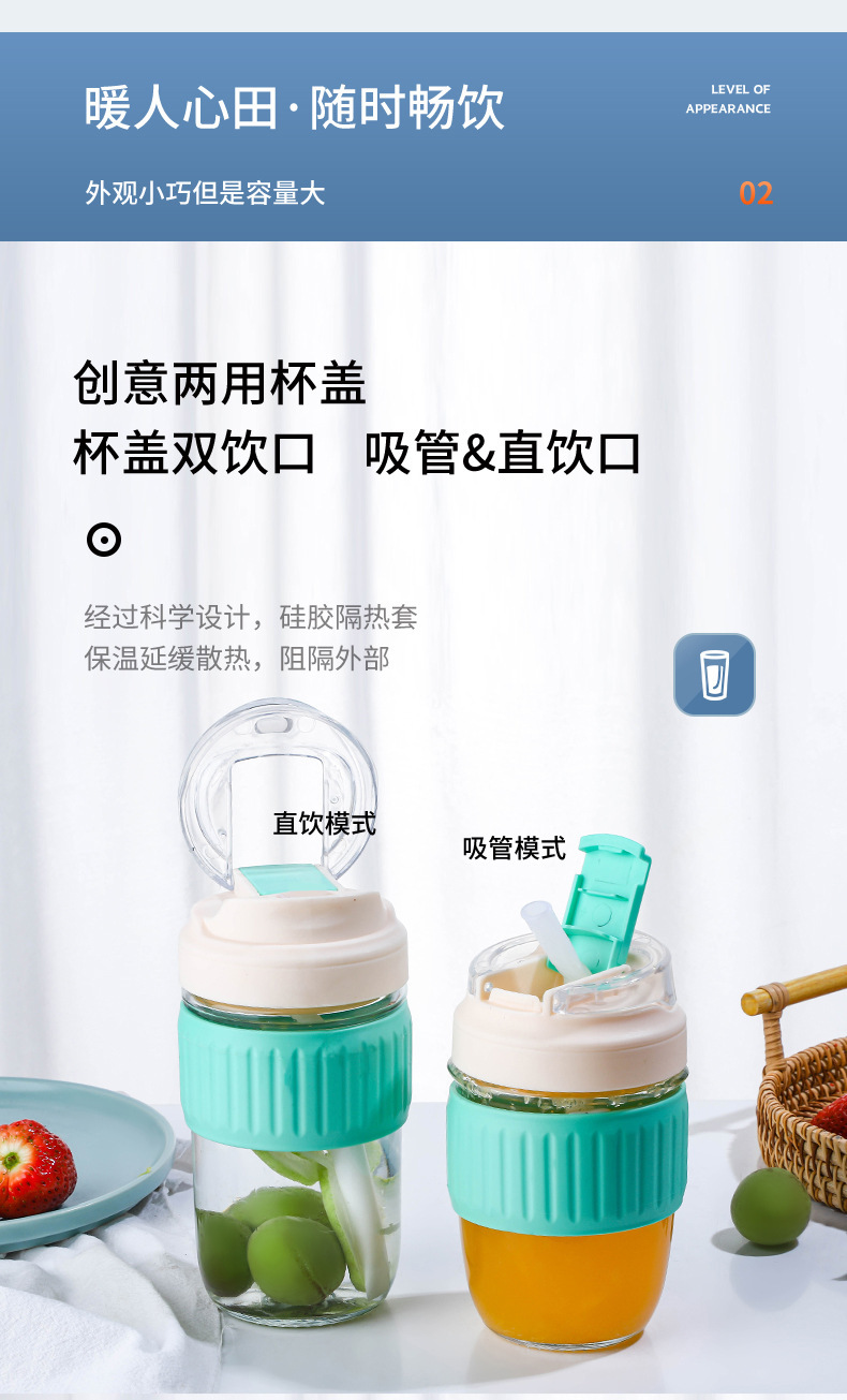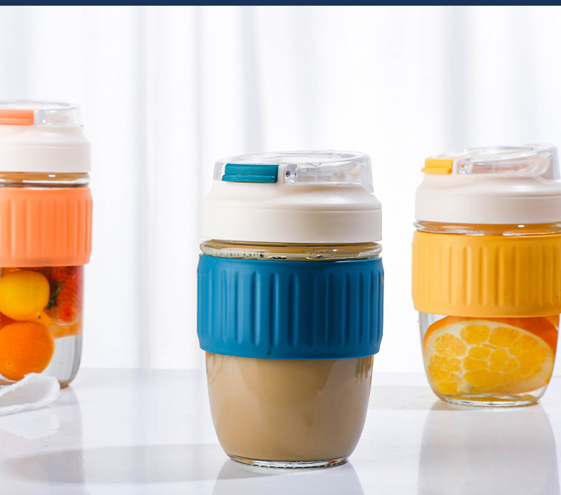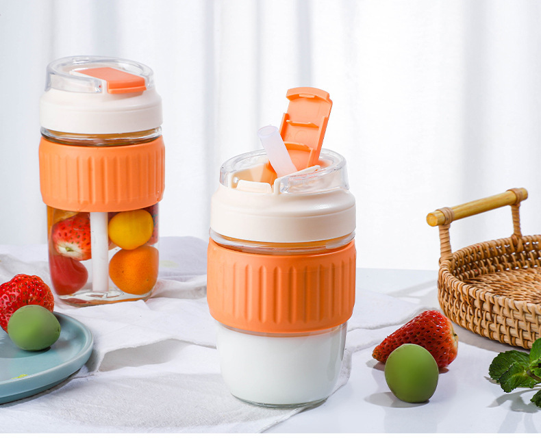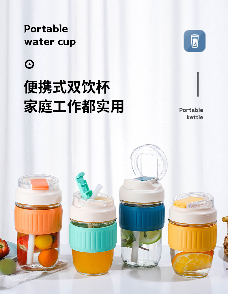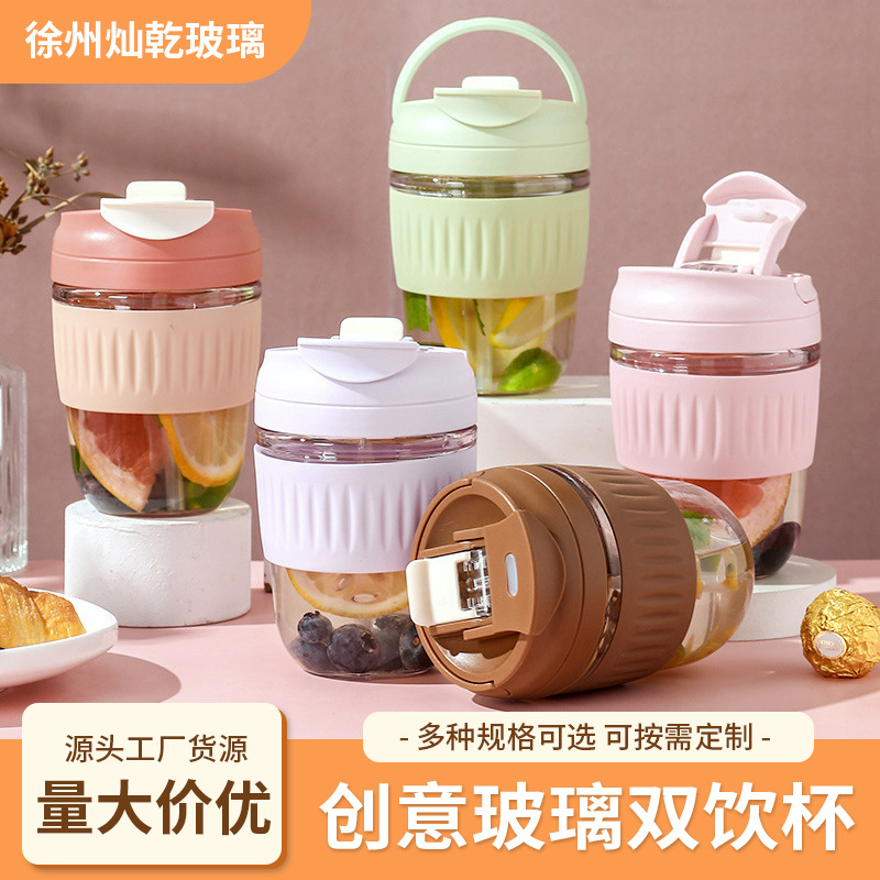 도매 더블 마시는 컵 높은 모양의 유리 물 컵 휴대용 커피 컵 단열재 안티-scald 밀짚 컵 주스 컵 컵스토어 가기