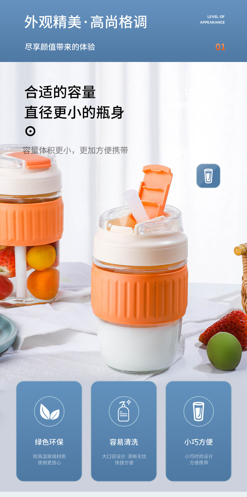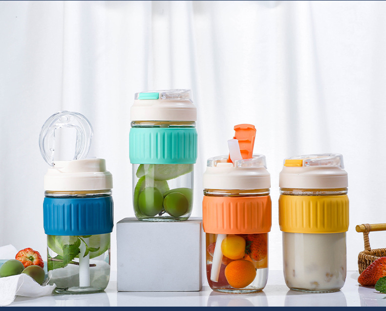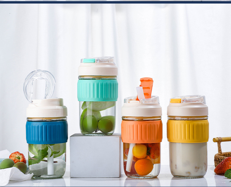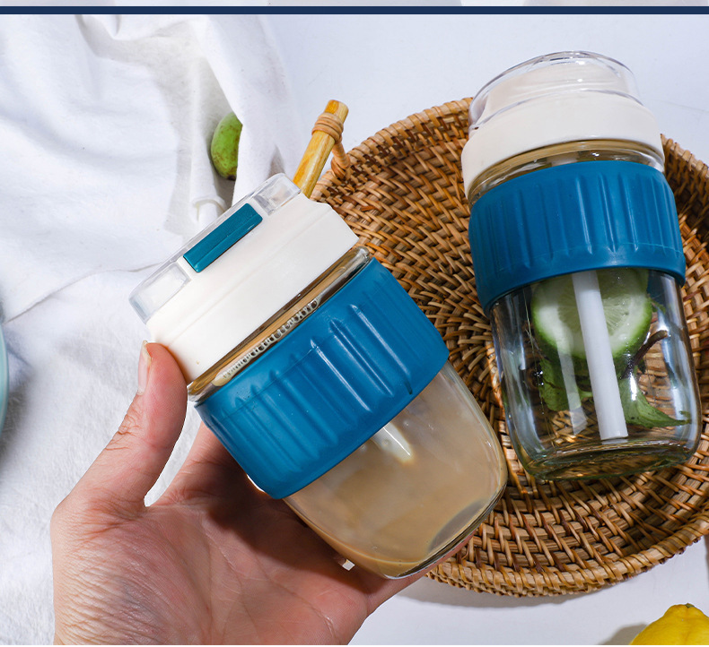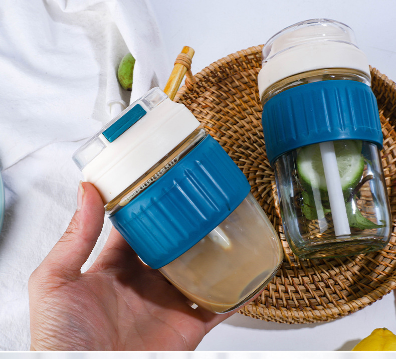 도매 더블 마시는 컵 높은 모양의 유리 물 컵 휴대용 커피 컵 단열재 안티-scald 밀짚 컵 주스 컵 컵스토어 가기