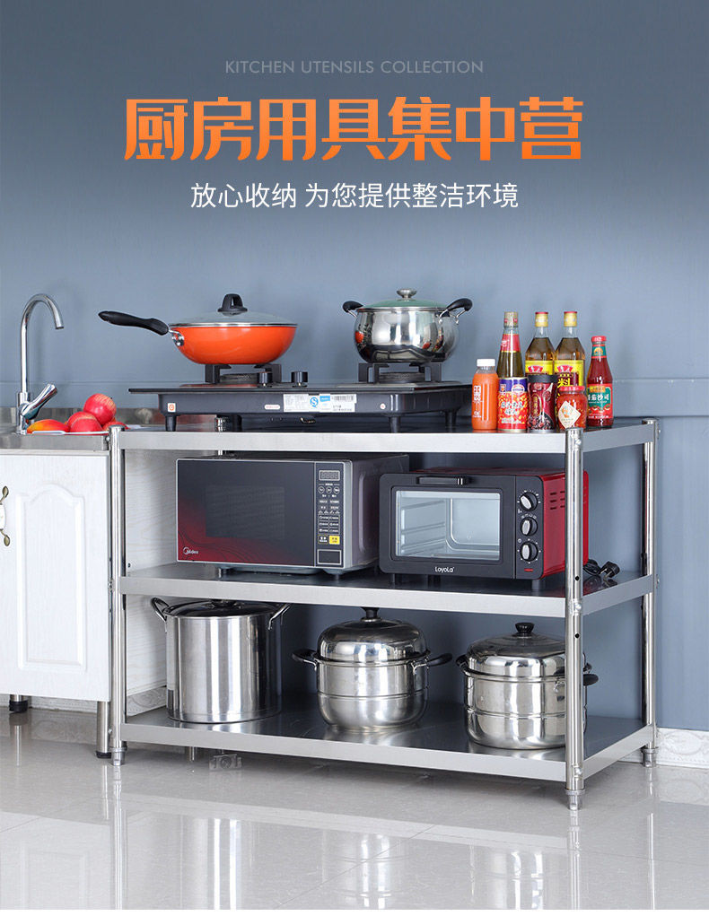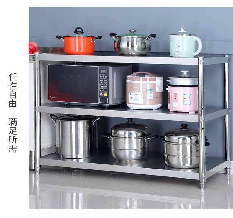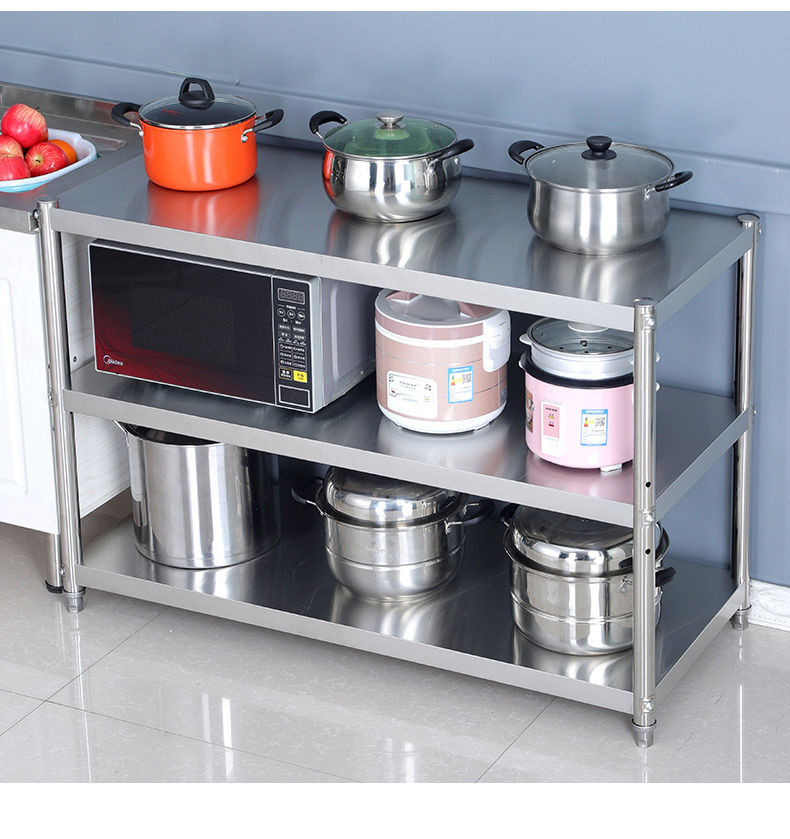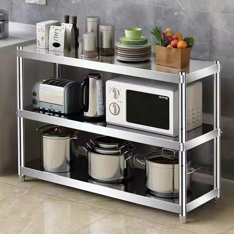 스테인레스 스틸 스토리지 랙 3 층 주방 가정용 다기능 이동식 전자 레인지 발코니 침실 스토리지 랙
