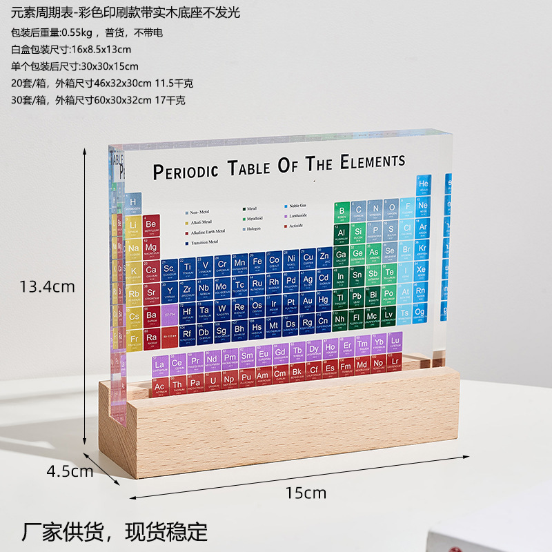 化学元素周期表实物立体教师实用礼物初高中书房学习桌面装饰摆件大号初中化学元素周期表实物内嵌教师节礼物学习摆件200x125x24mm