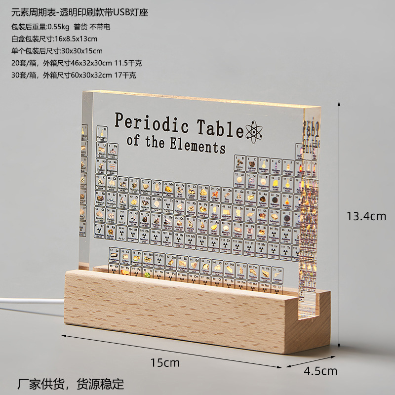 实物化学元素周期表桌面摆件初高中创意节生日儿童节收藏元素礼物化学元素周期表摆件创意客厅办公室桌面透明亚克力摆设教师节礼物