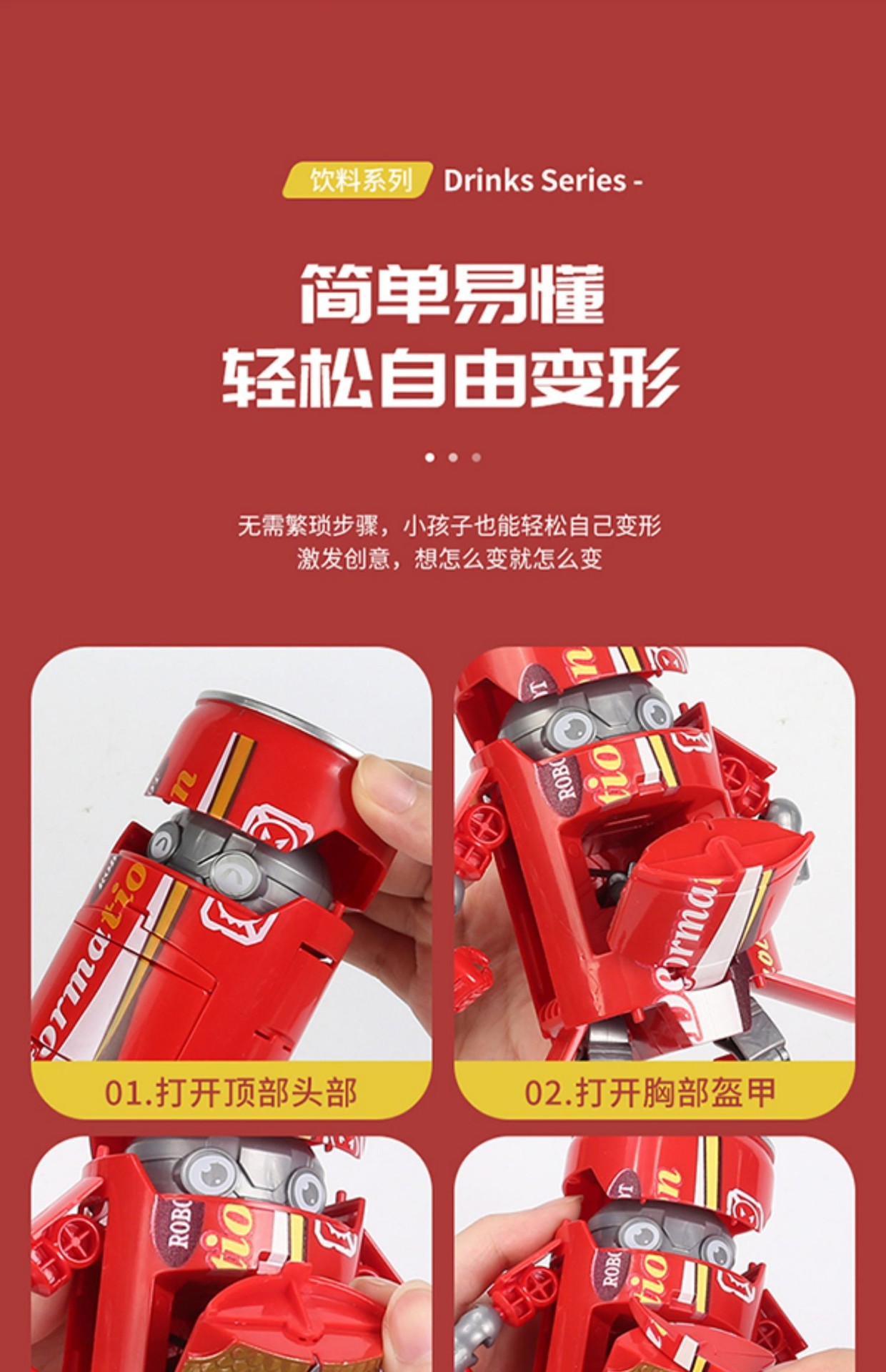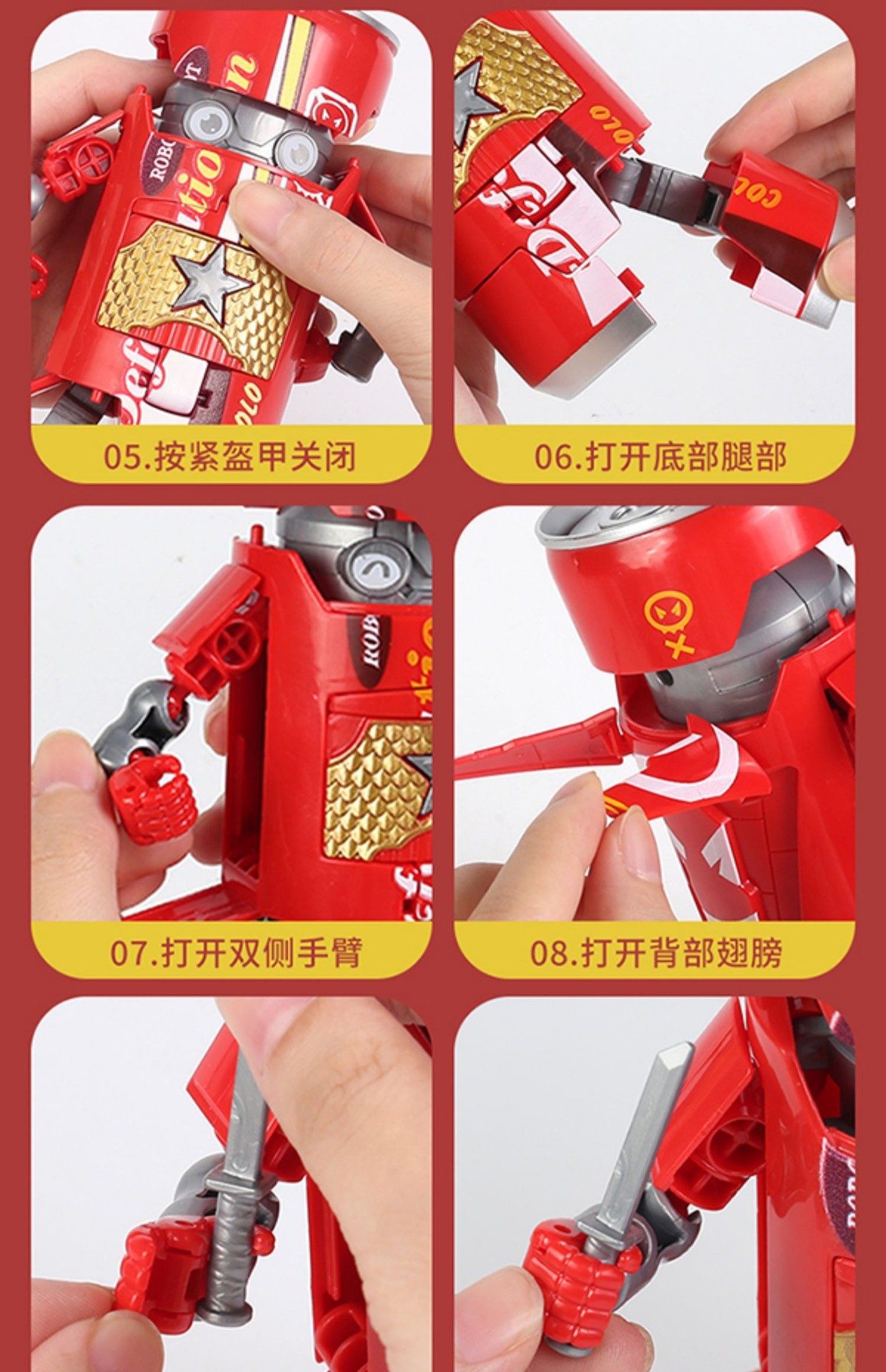 온라인 유명 인사 팝은 장난감 소다 콜라 음료 로봇 3 세 소년 킹콩 모델 창조적 인 선물을 변형시킬 수 있습니다스토어 가기