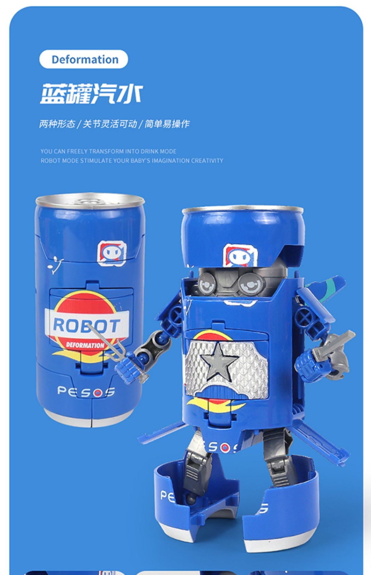 온라인 유명 인사 팝은 장난감 소다 콜라 음료 로봇 3 세 소년 킹콩 모델 창조적 인 선물을 변형시킬 수 있습니다