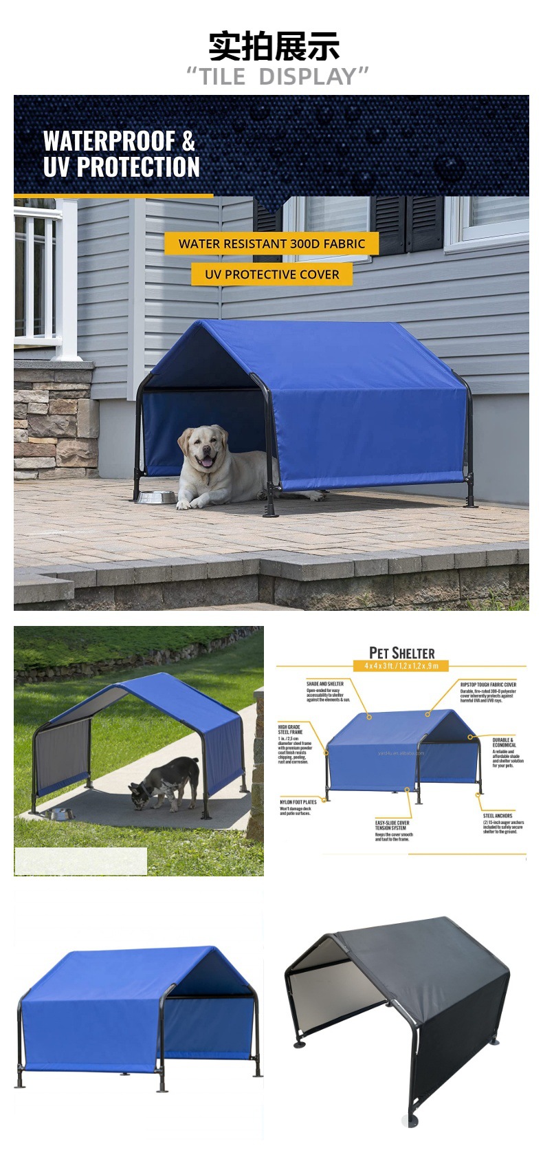 방수 태양 보호 이동식 차양 비 커버 개 차양 야외 애완 동물 차양