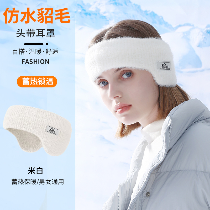 겨울용 빈 탑 모조 밍크 모피 따뜻한 귀마개, 머리 장착형 귀마개, 야외 사이클링 방한 두꺼운 귀마개 및 벨벳 귀 따뜻하게