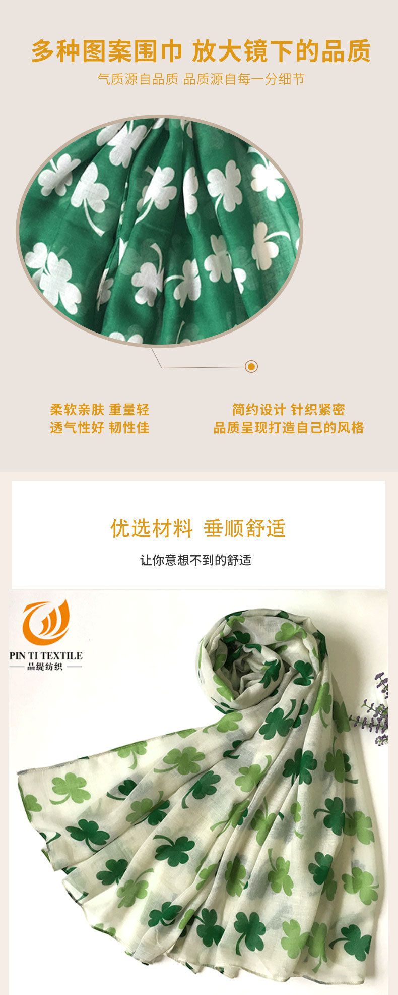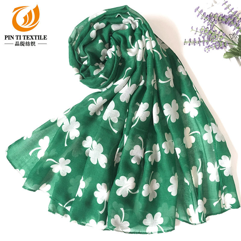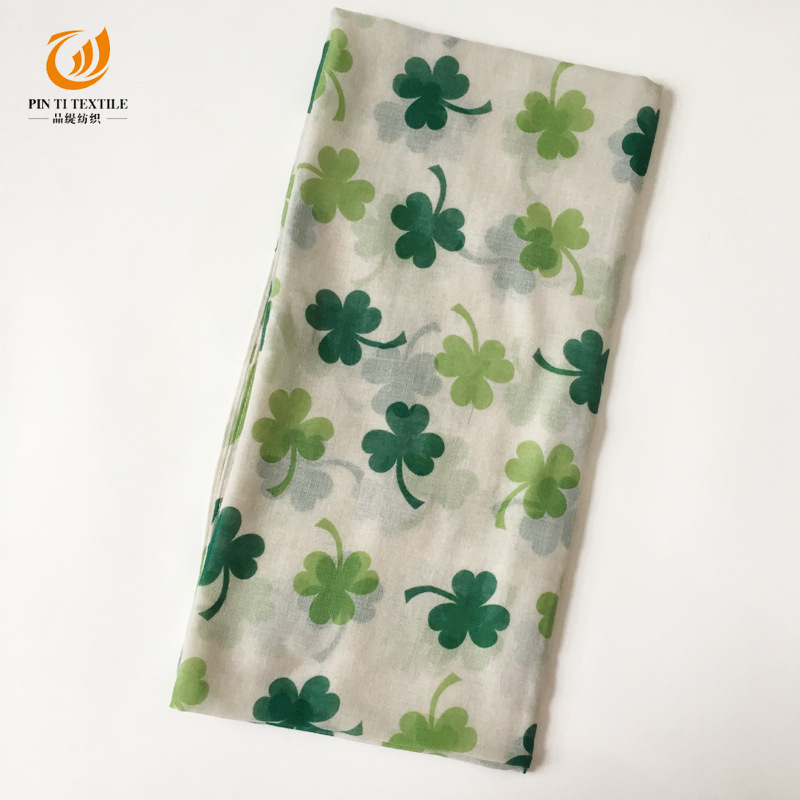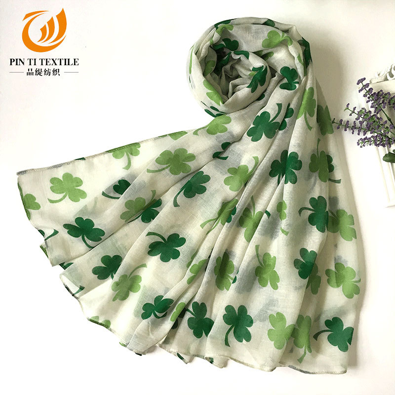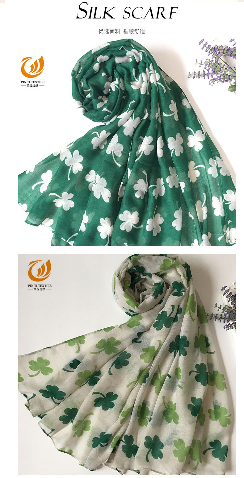 아일랜드 성 패트릭의 날 스카프 발리 원사 작은 신선한 실크 스카프 식물 꽃 인쇄 스카프 도매