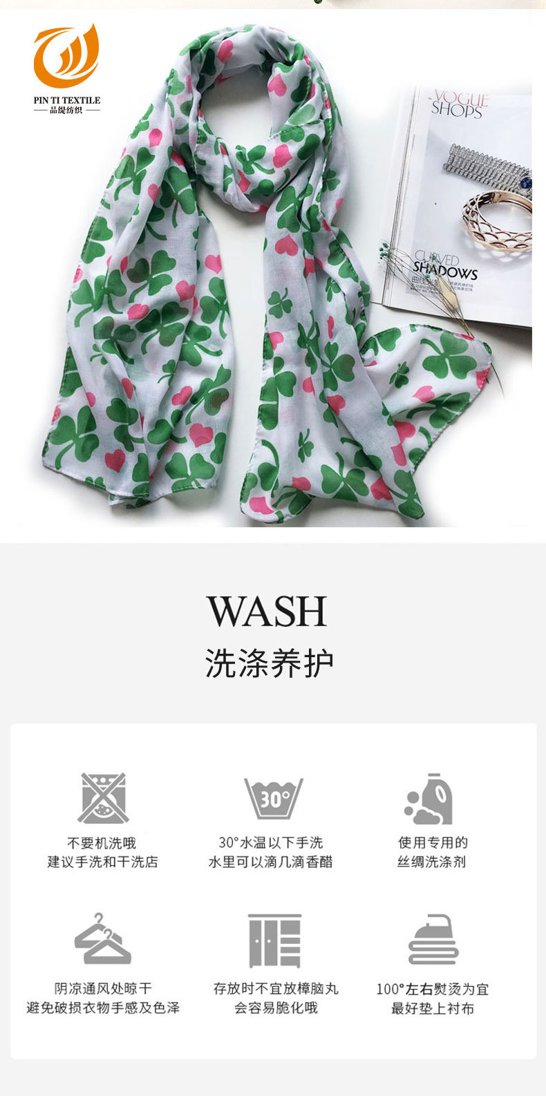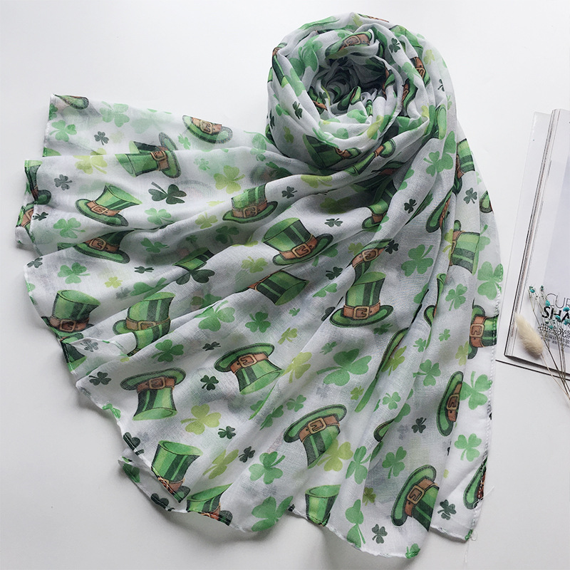 아일랜드 성 패트릭의 날 스카프 발리 원사 작은 신선한 실크 스카프 식물 꽃 인쇄 스카프 도매스토어 가기
